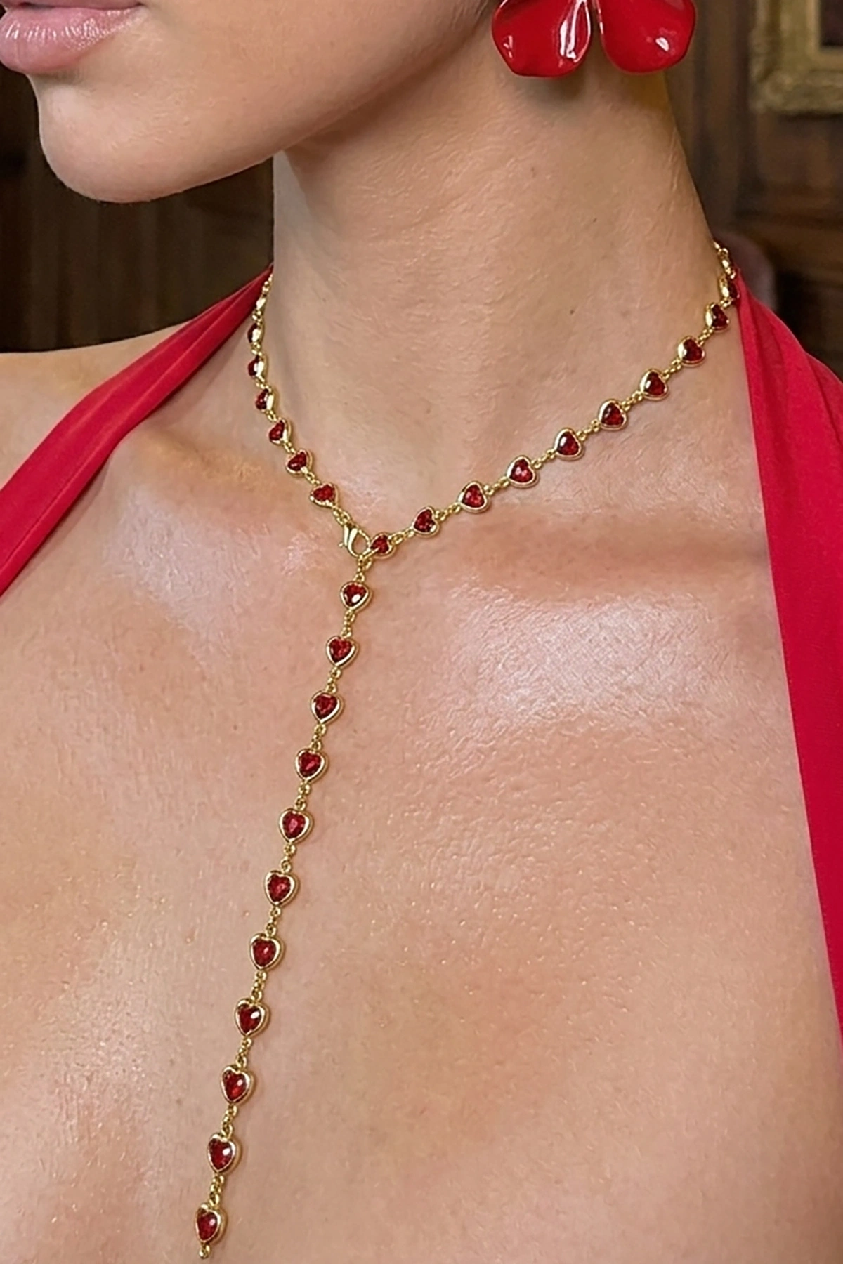 Altın Renk Kalp Figürlü Çelik Y Kolye