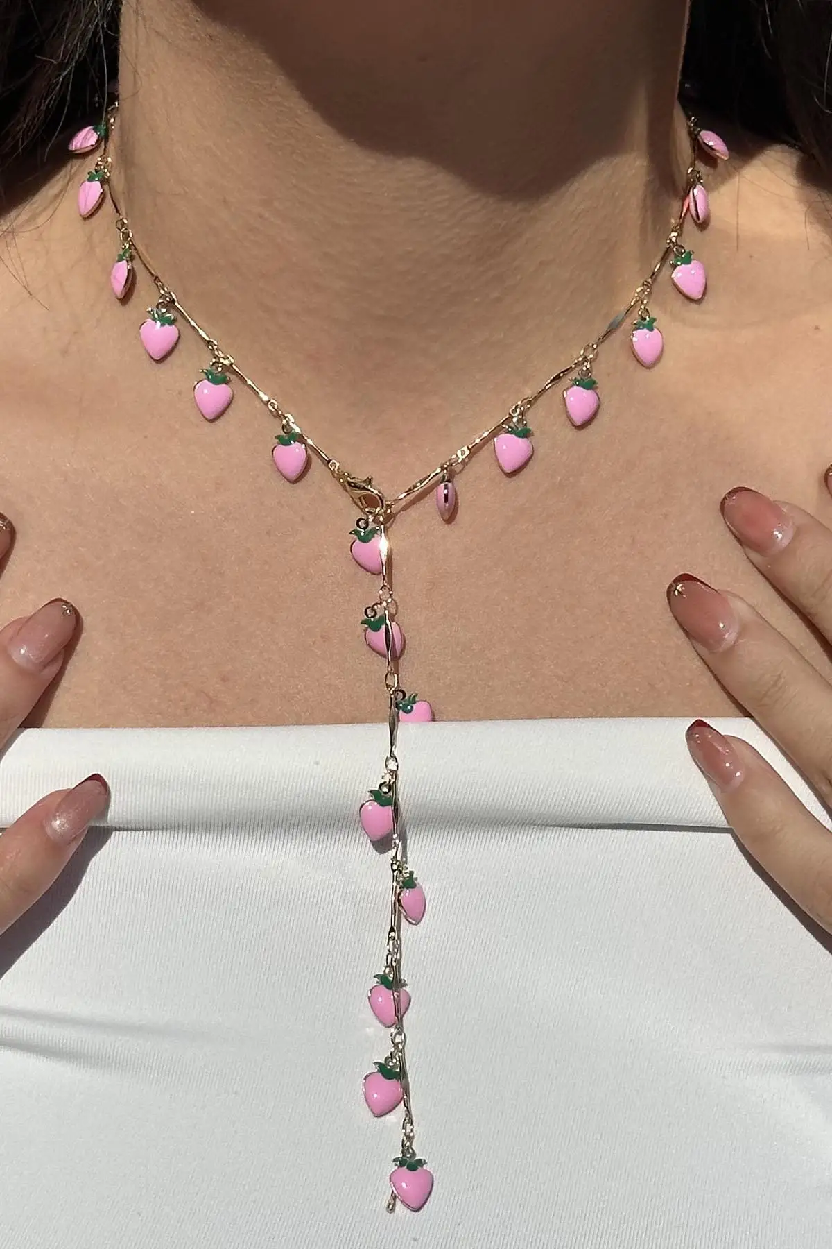 Gümüş Renk Çilek Figürlü Çelik Y Kolye