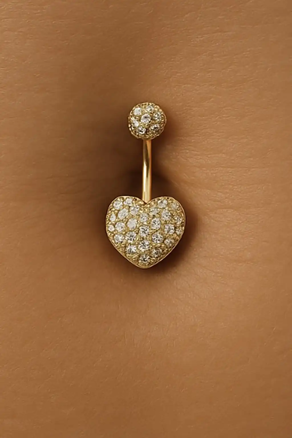 Altın Renk Kalp Figürlü Cerrahi Çelik Göbek Piercing
