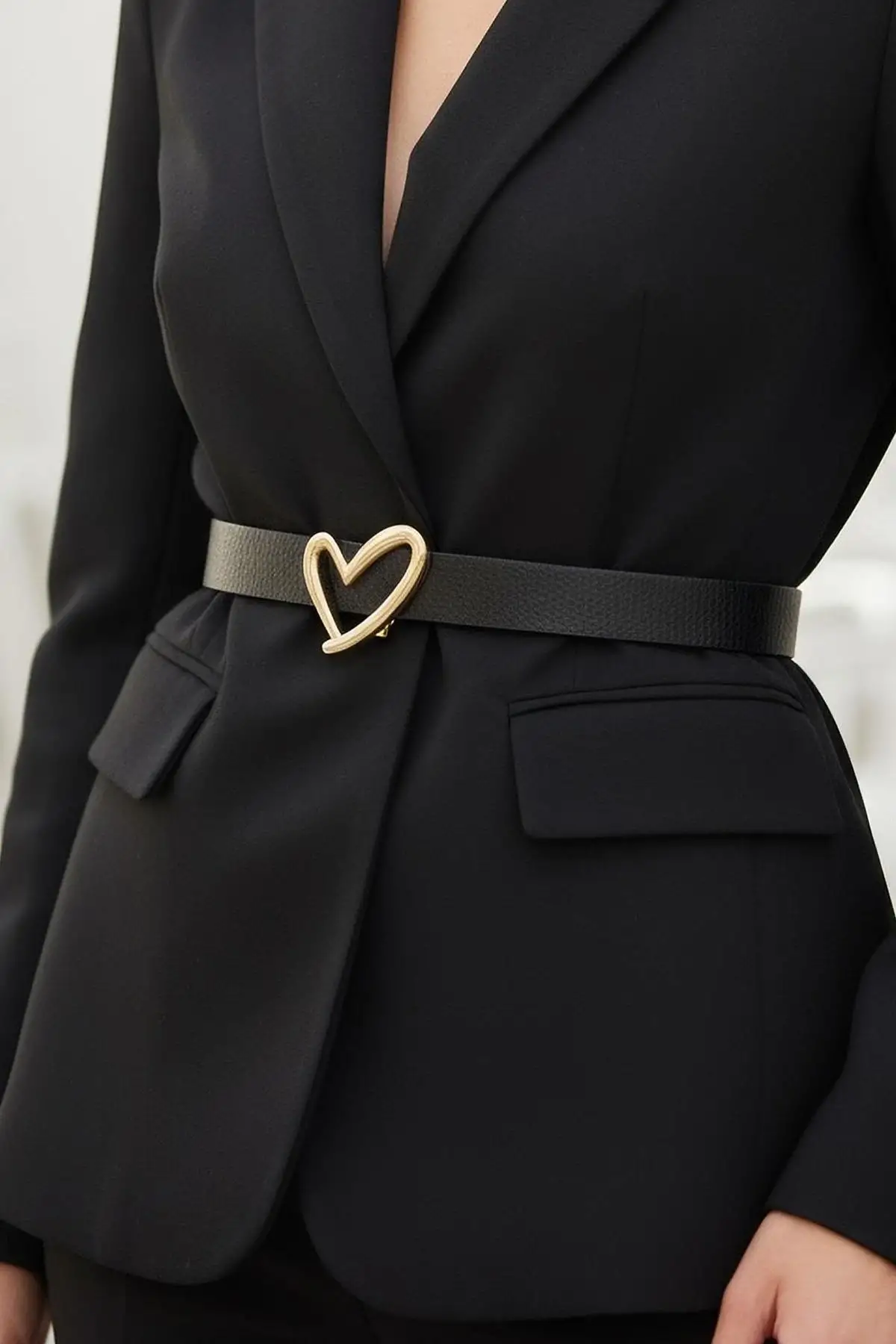 Altın Renk Kalp Figürlü Deri Detaylı Kadın Kemer
