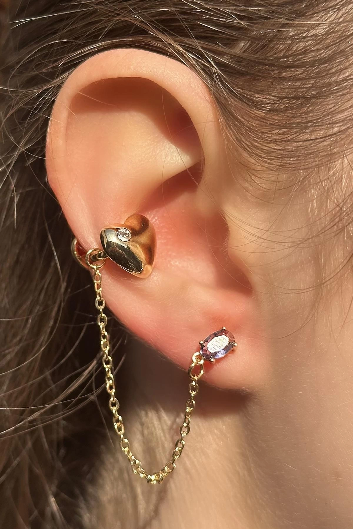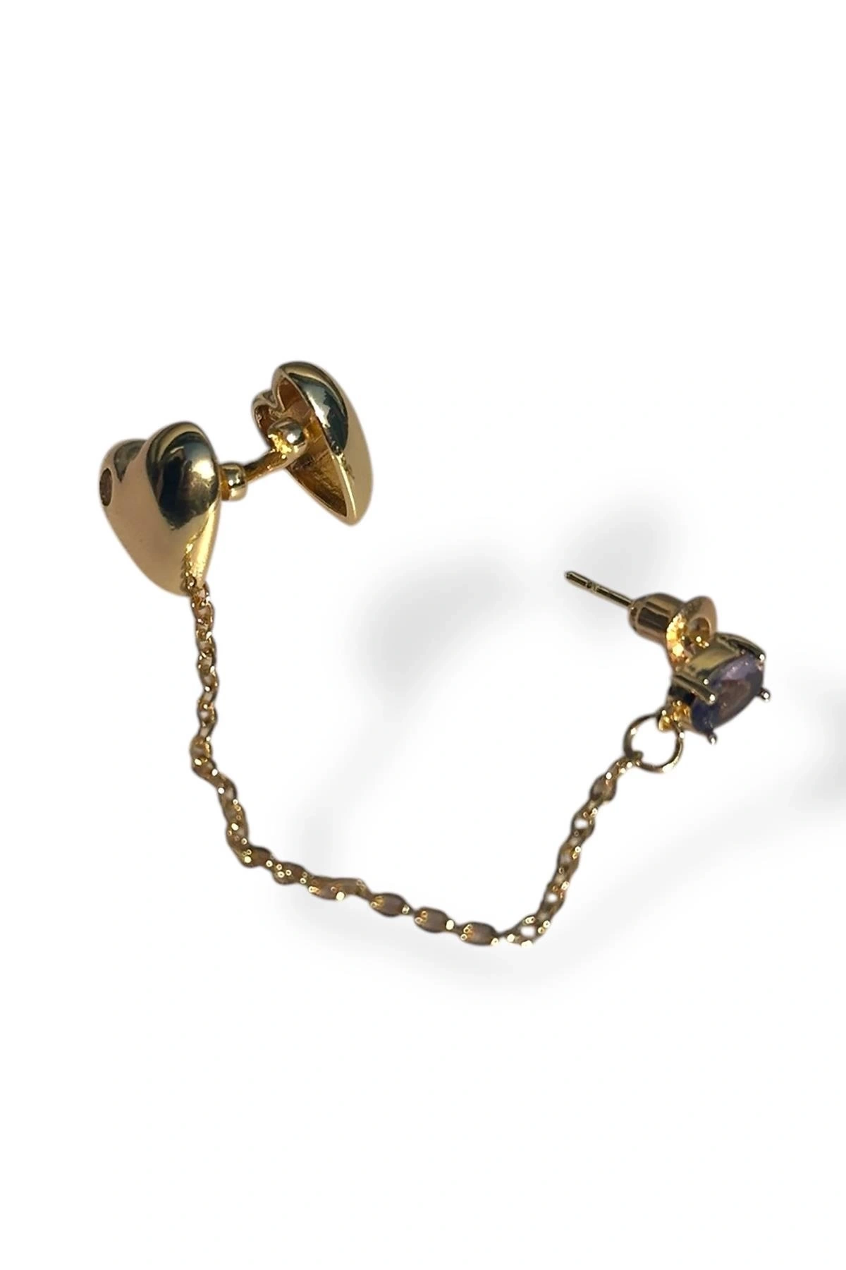 Altın Renk Kalp Figürlü Ear Cuff Küpe (Tek)
