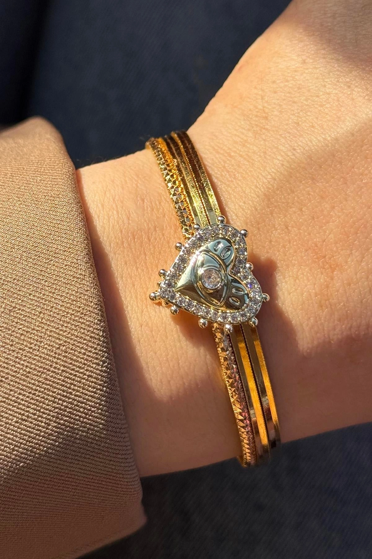 Altın Renk Kalp Figürlü Taş Detaylı Ajda Charm / Kolye/ Bileklik Ucu