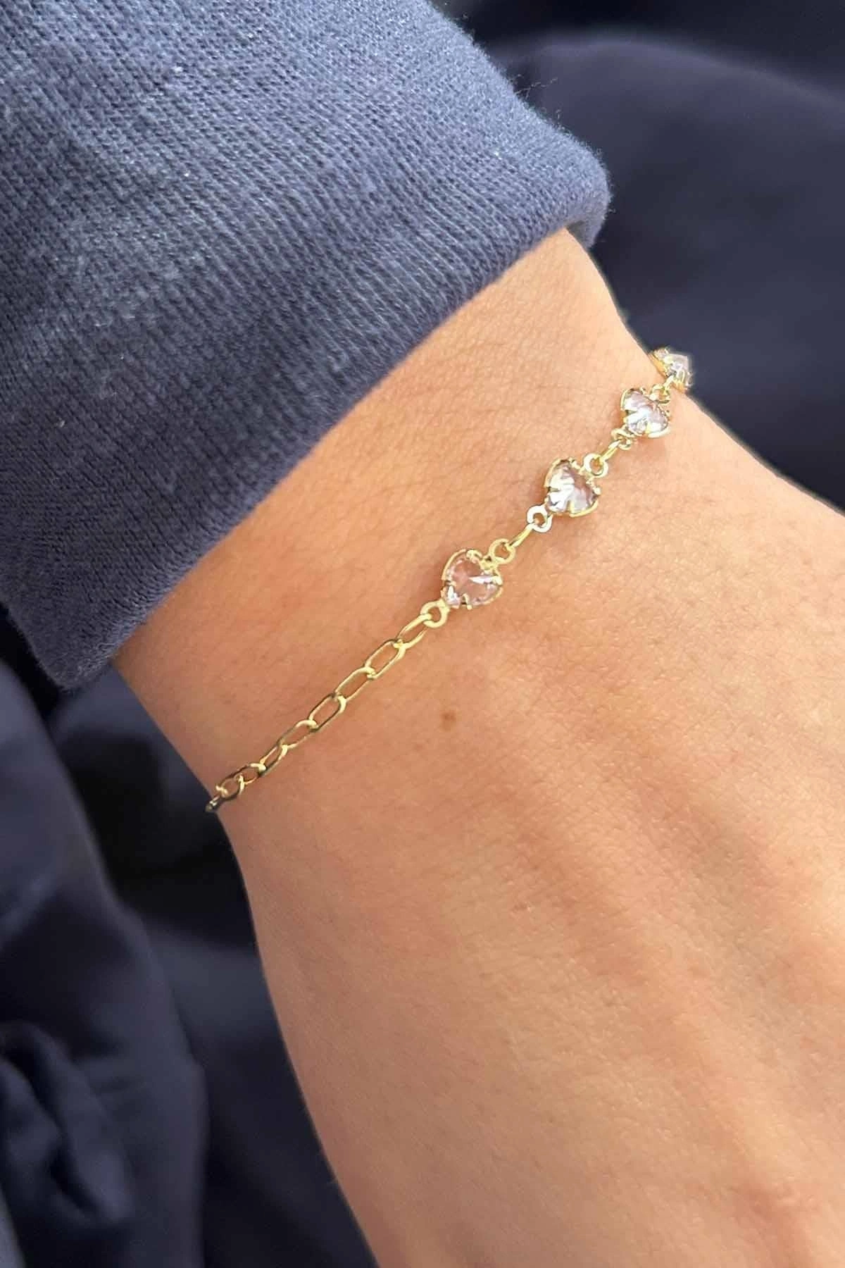 Altın Renk Kalp Figürlü Taş Detaylı Bileklik