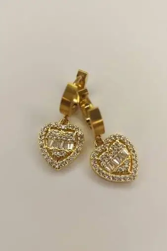Altın Renk Kalp Figürlü Taş Detaylı Küpe (Çift)
