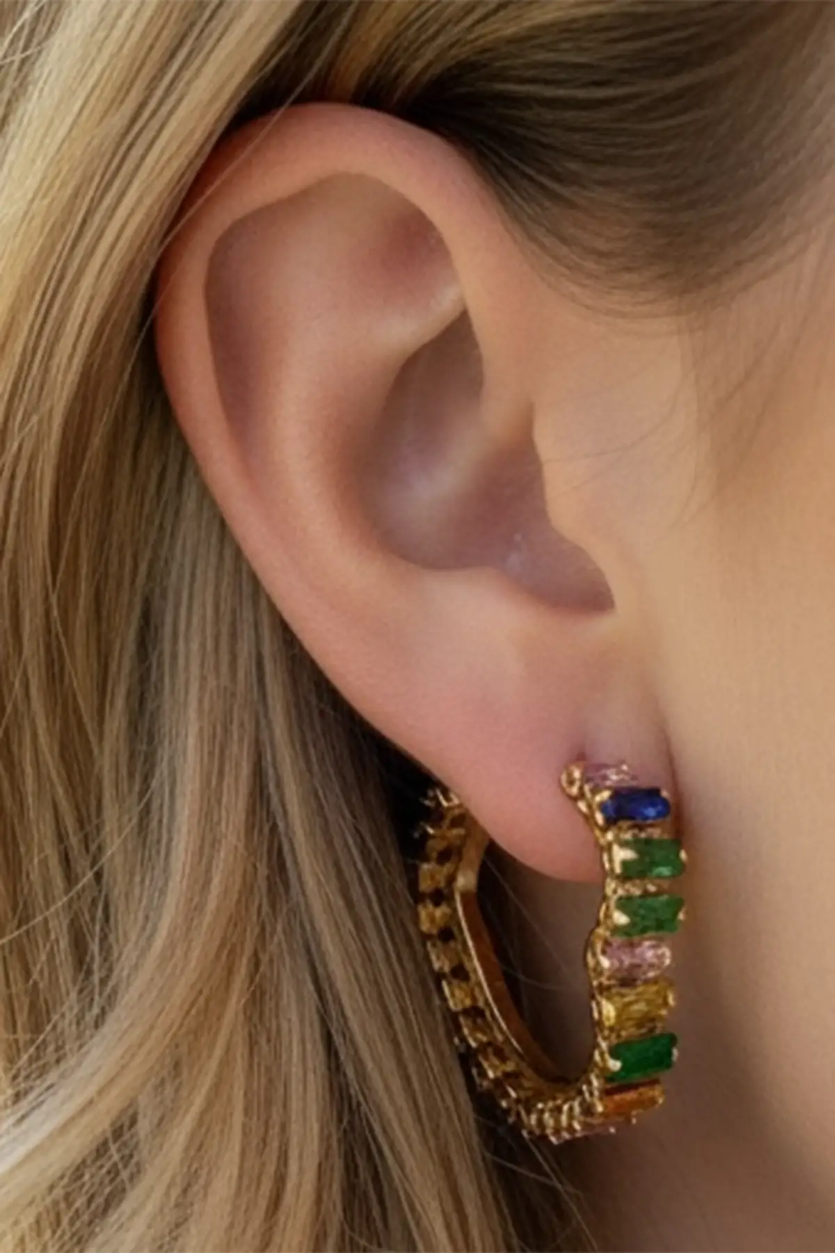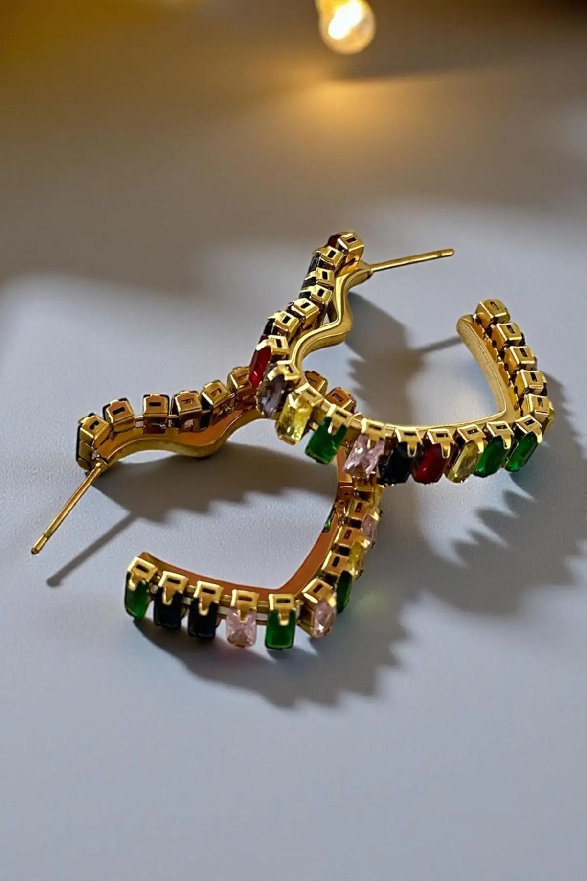 Altın Renk Taş Detaylı Çelik Küpe (Çift)