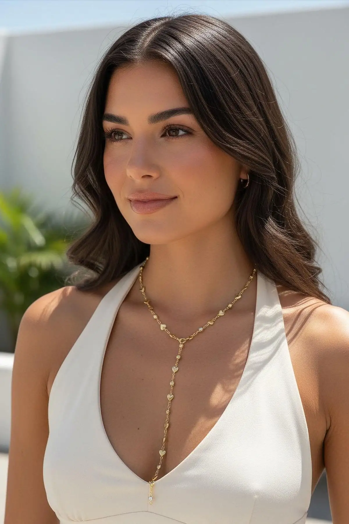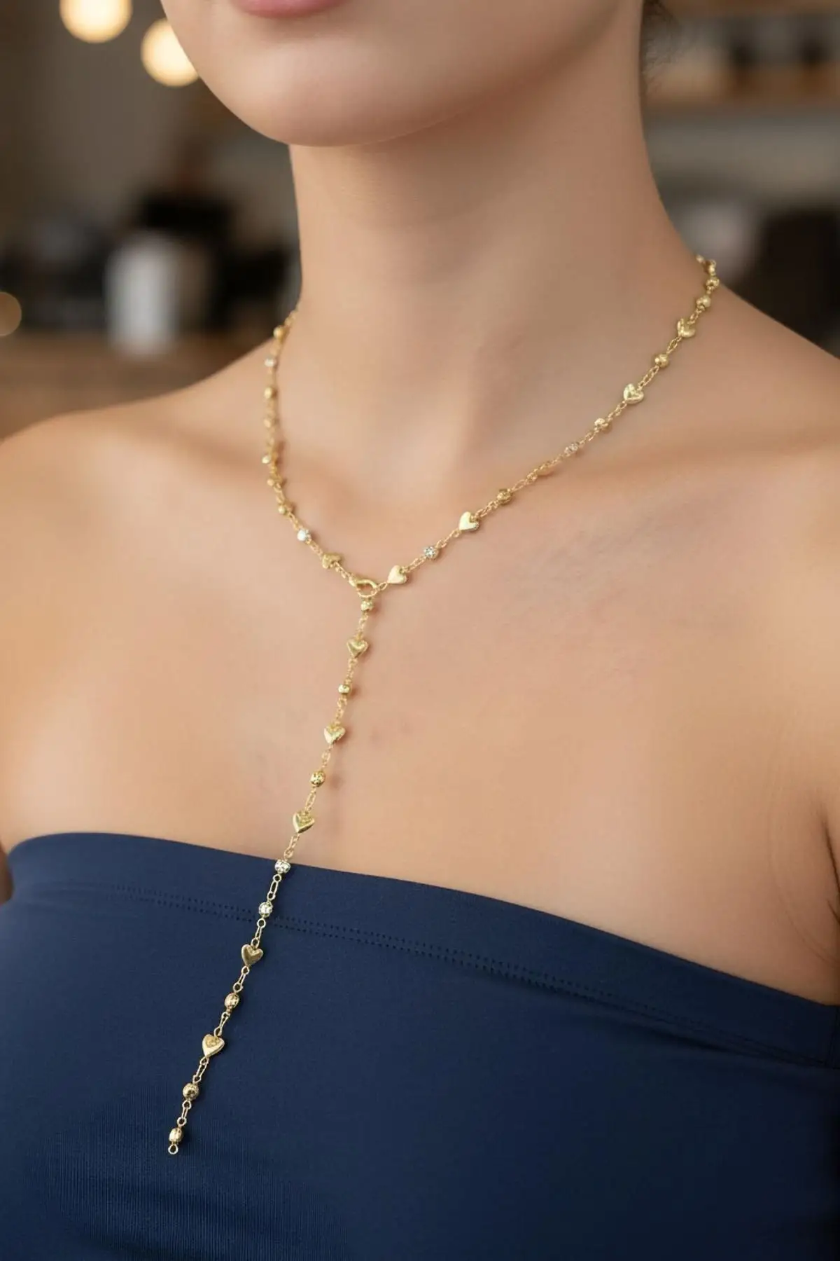 Altın Renk Kalp Figürlü Taş Detaylı Çelik Y Kolye