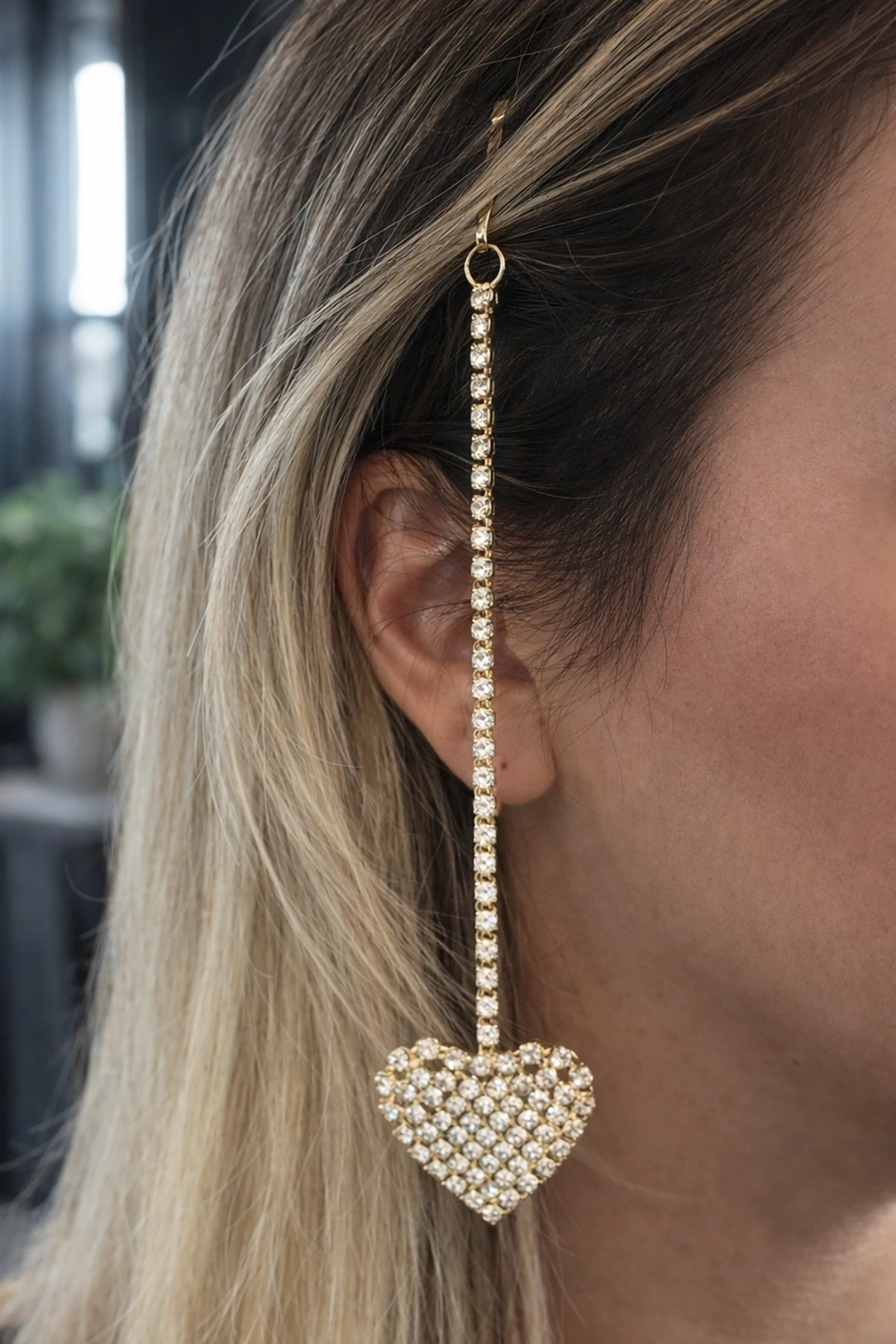 Altın Renk Kalp Figürlü Taş Detaylı Saç Aksesuarı