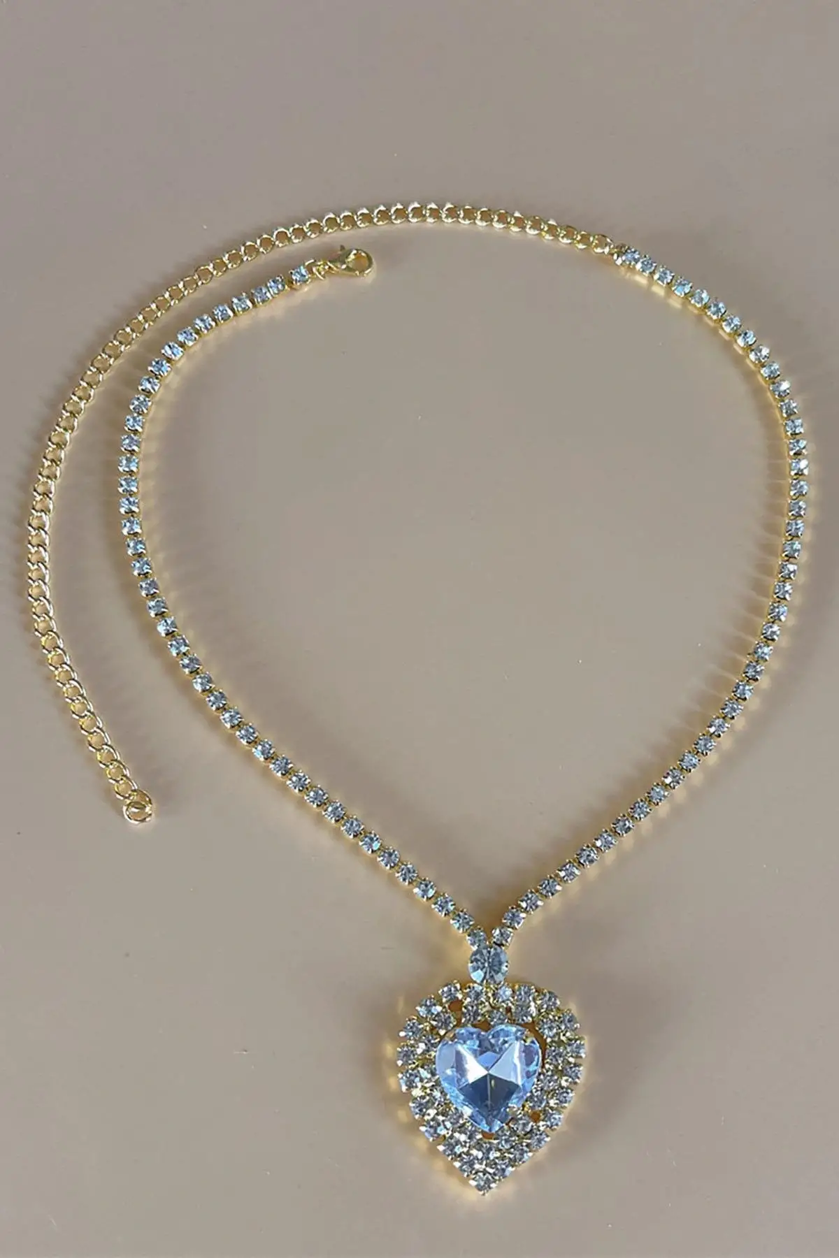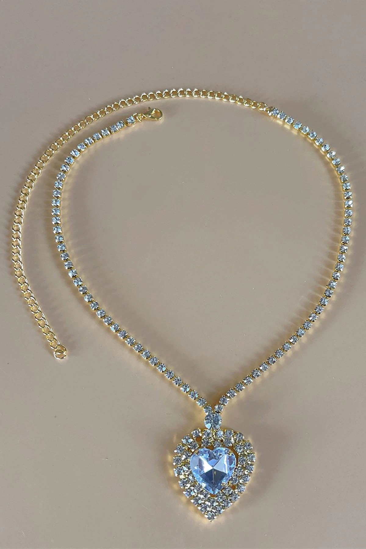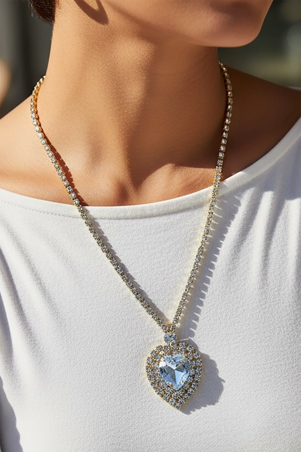 Altın Renk Kalp Figürlü Taş Detaylı Tasarım Abiye Kolye