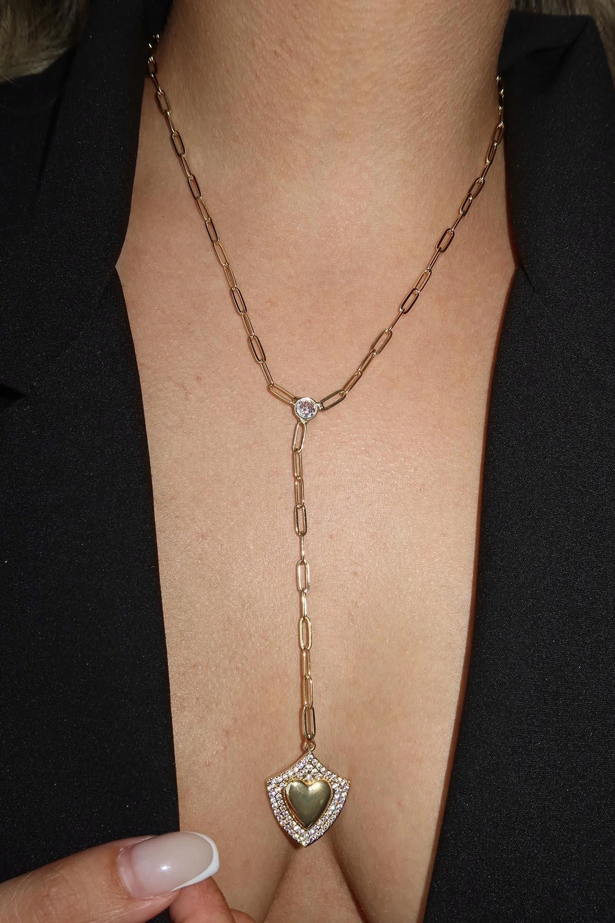 Altın Renk Kalp Figürlü Taş Detaylı Y Kolye