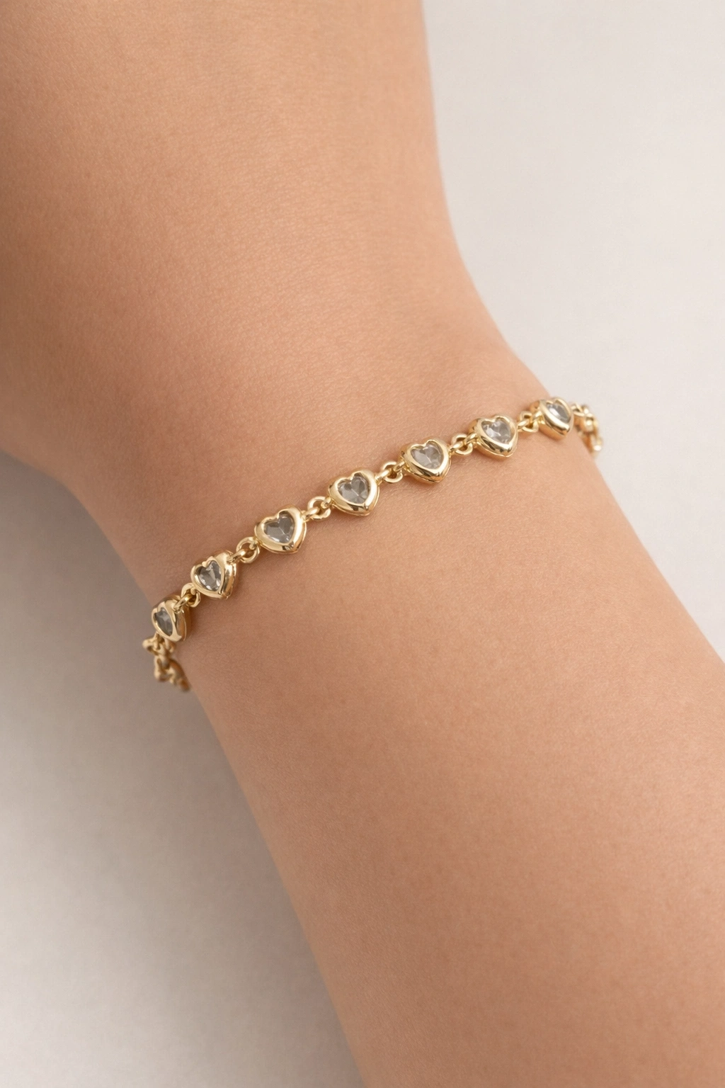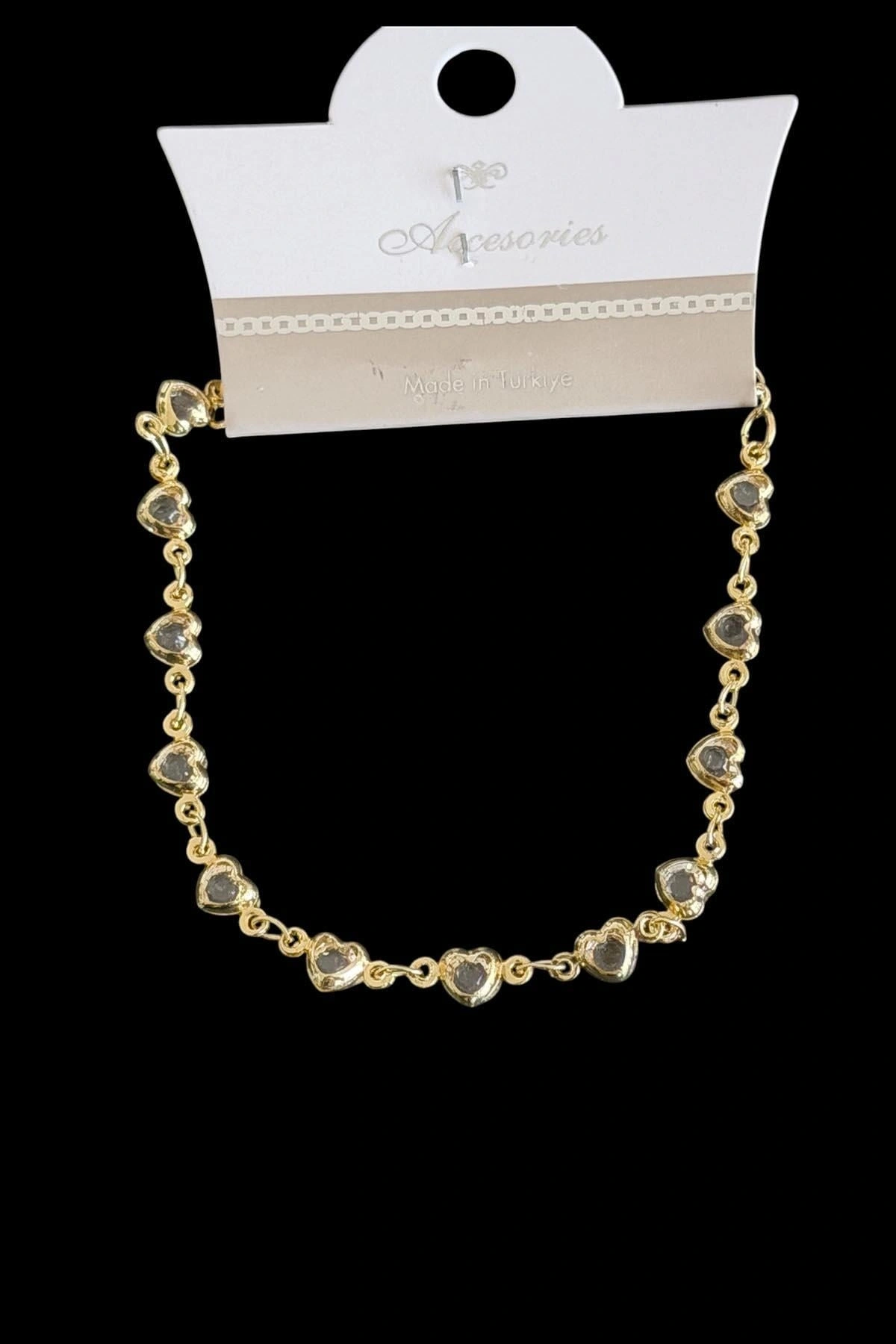 Altın Renk Kalp Figürlü Taşlı Bileklik