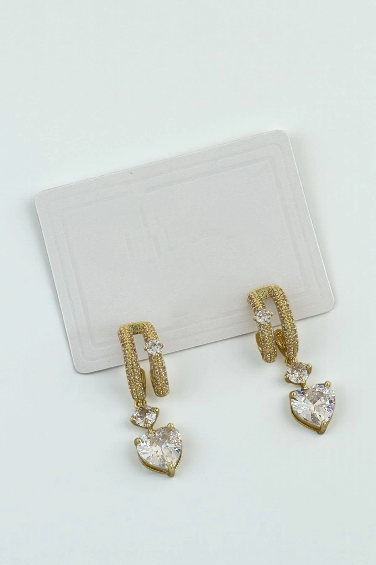 Altın Renk Kalp Taş Detaylı Küpe (Çift)
