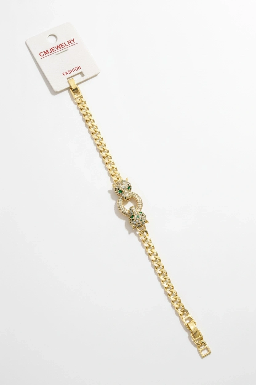 Altın Renk Kaplan Figürlü Taş Detaylı 14K Altın Kaplama CM Bileklik