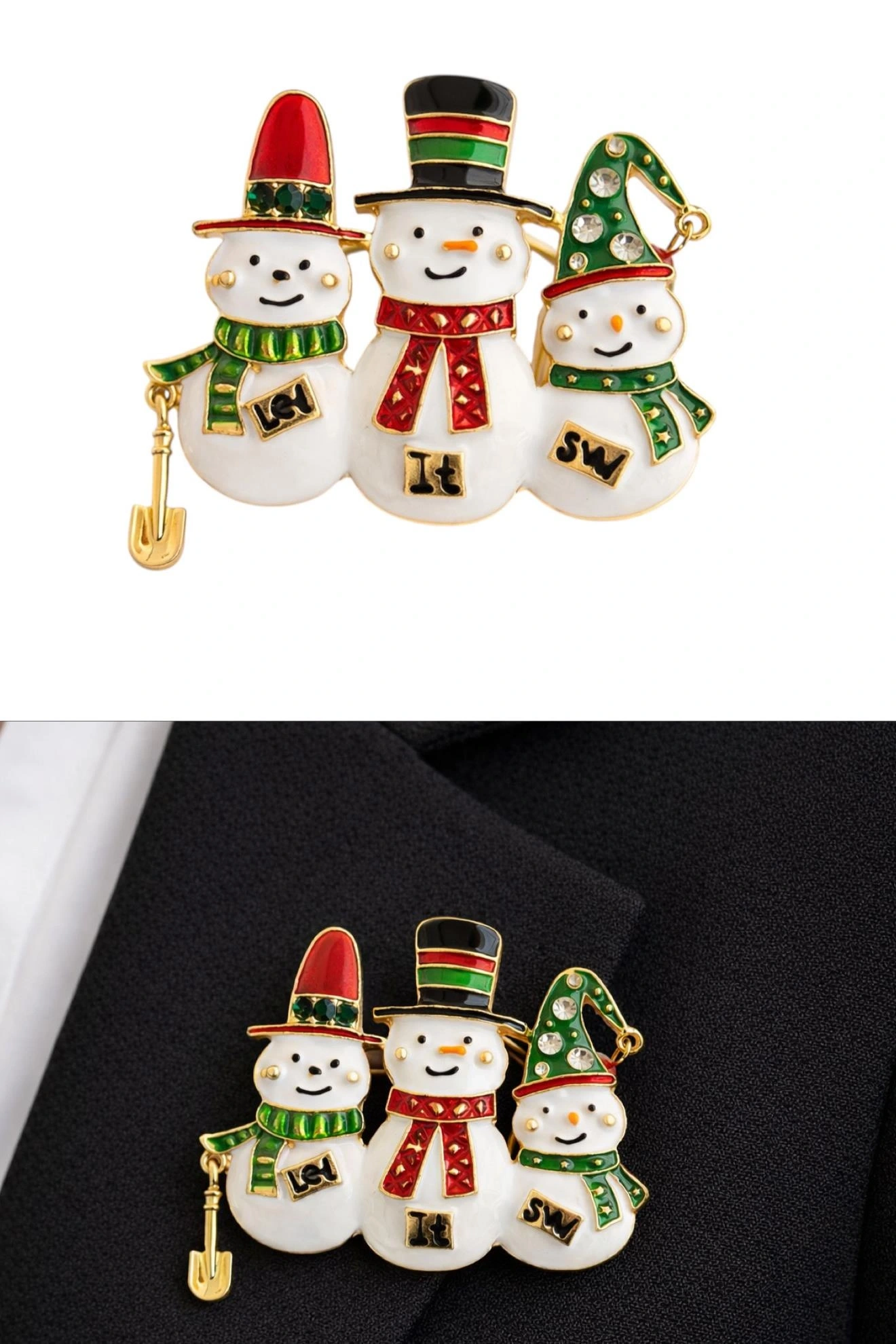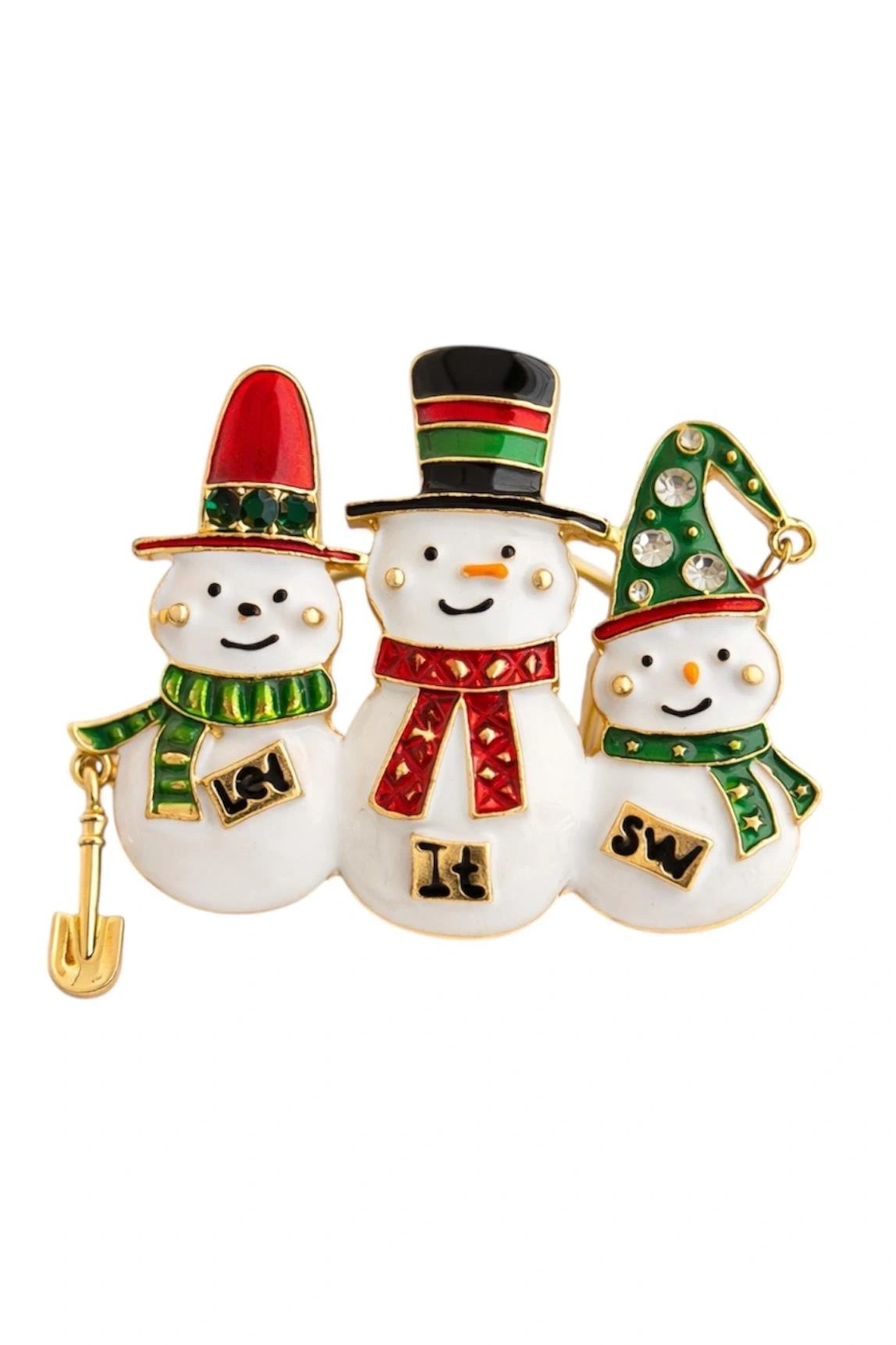Altın Renk Kardan Adam Figürlü Yılbaşı Temalı Broş
