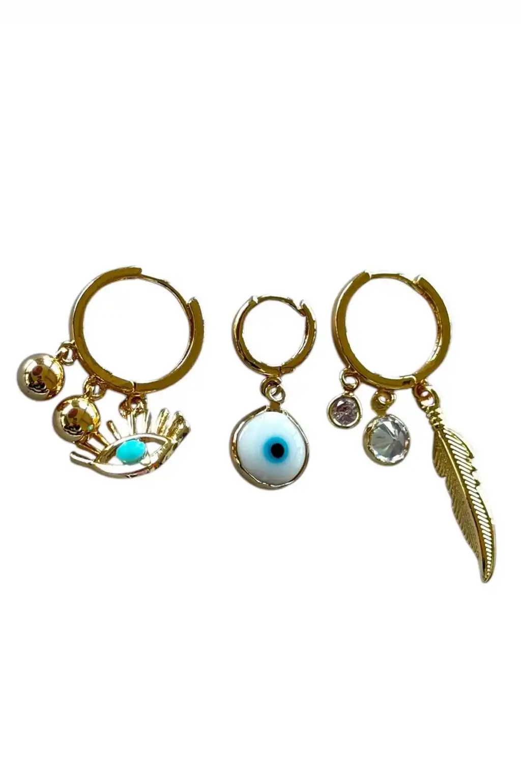 Altın Renk Karışık Figürlü 3'lü Küpe Set