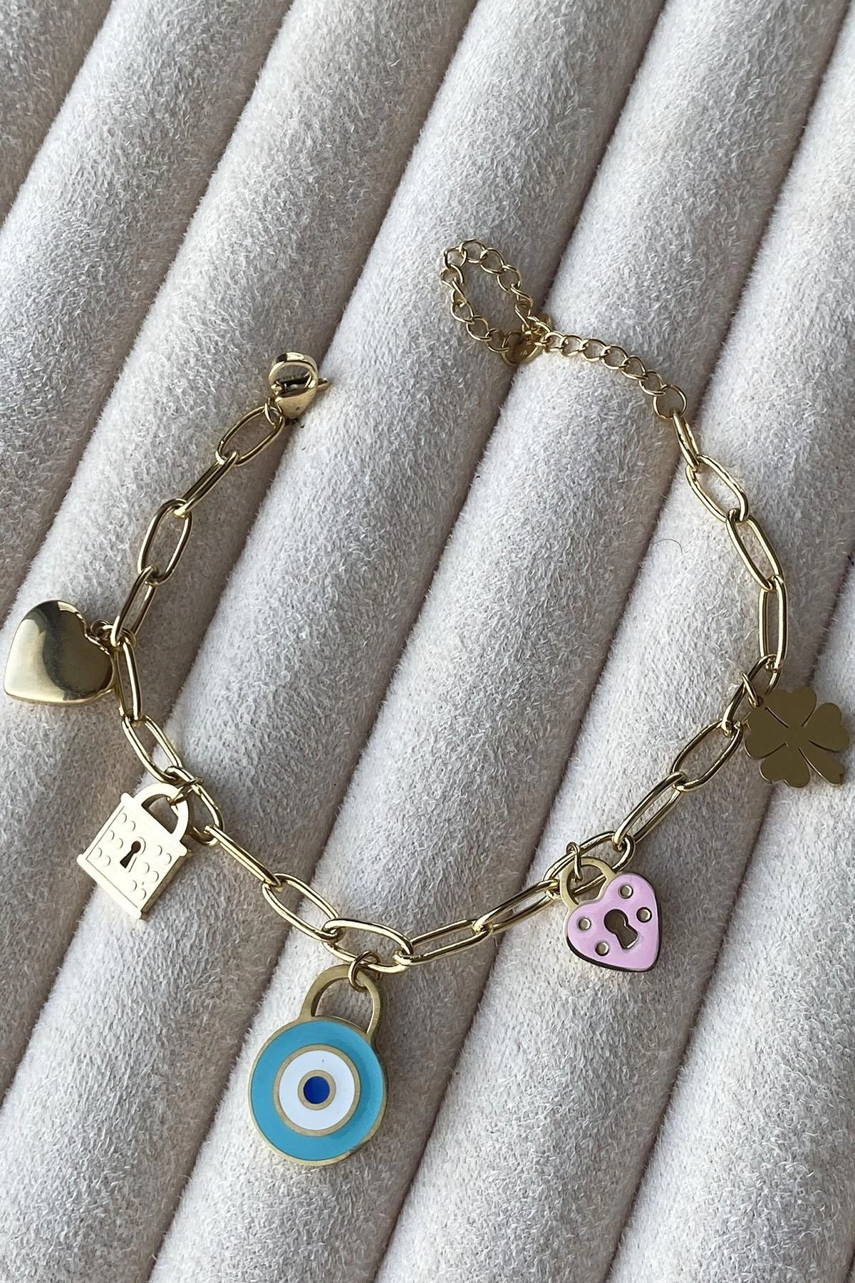 Altın Renk Karışık Figürlü Çelik Bileklik