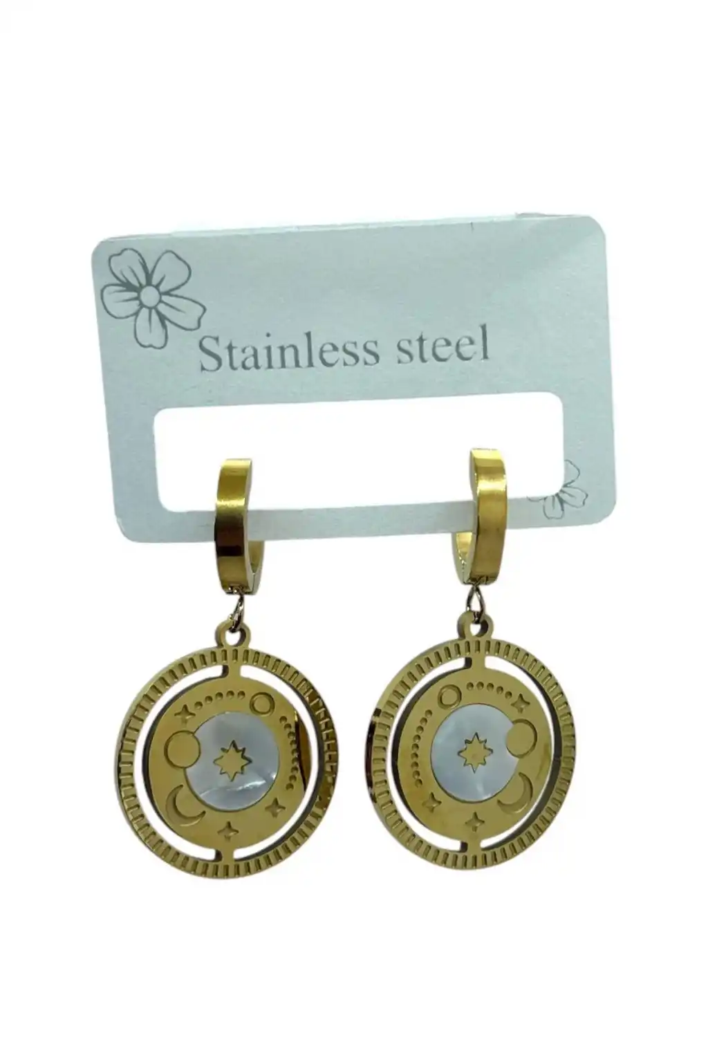 - Zarif tasarımıyla dikkat çeken bu çift küpe, altın rengi detaylarıyla göz alıcı bir görünüm sunar.