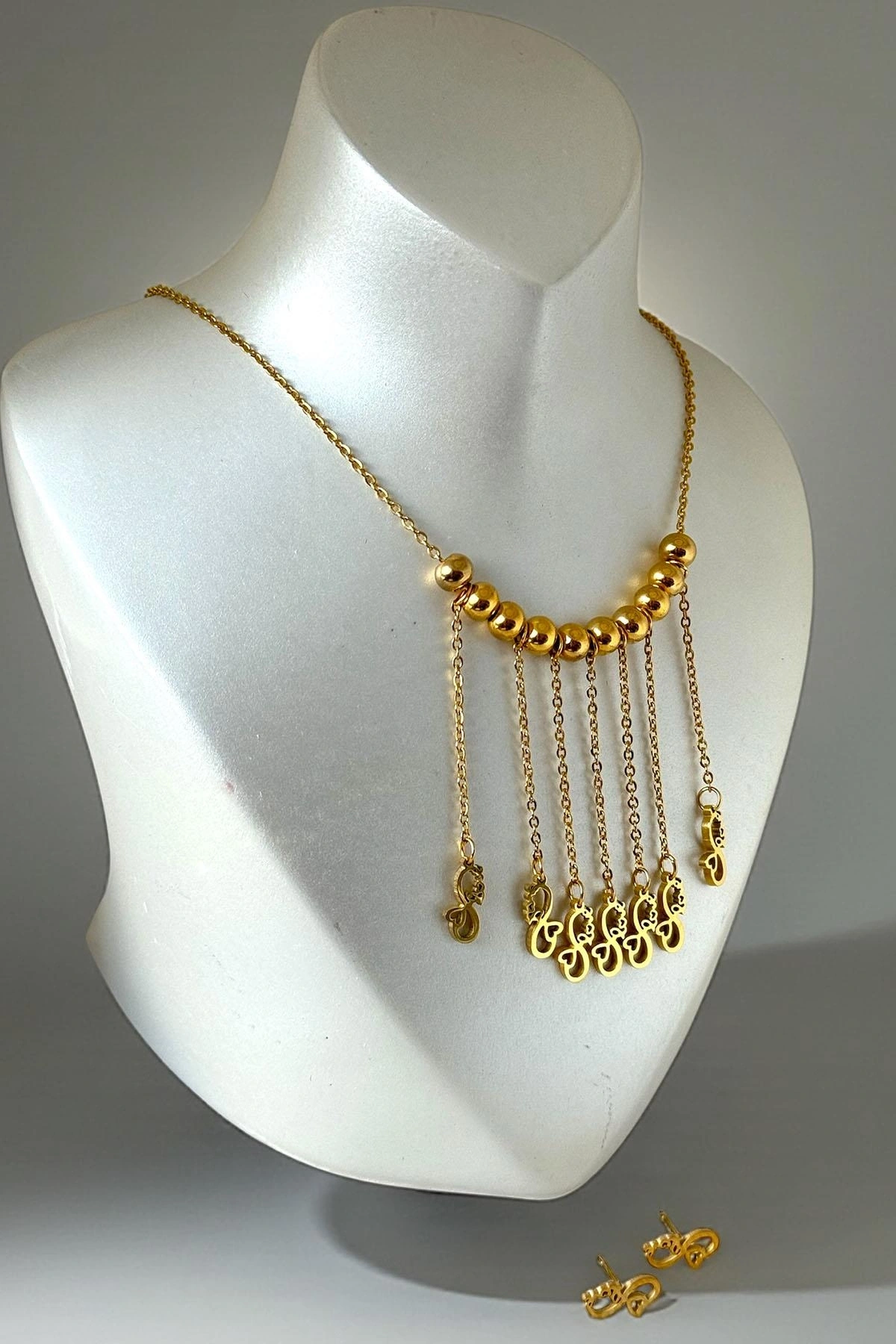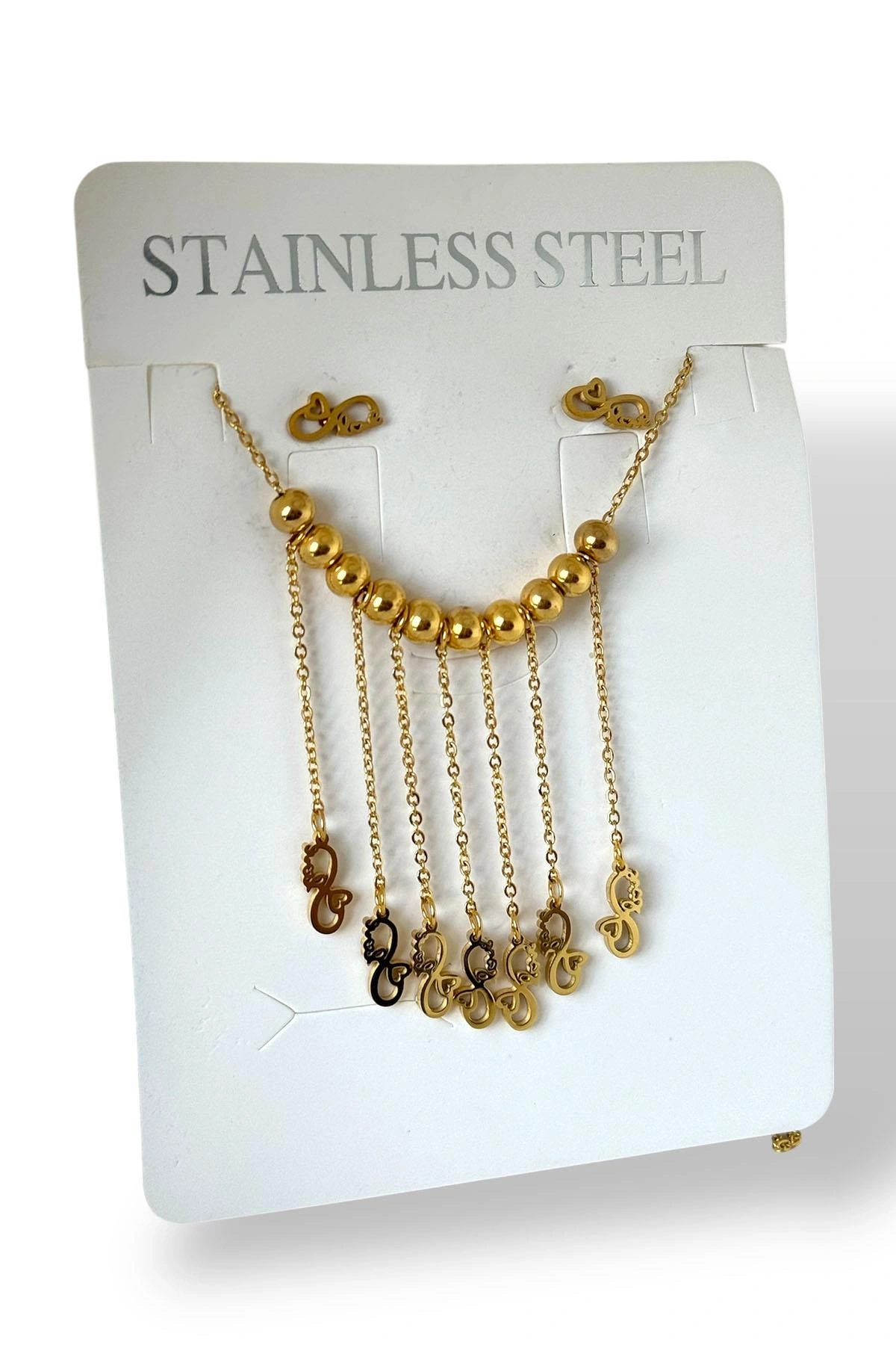 Altın Renk Karışık Figürlü Çelik Küpe Kolye Set