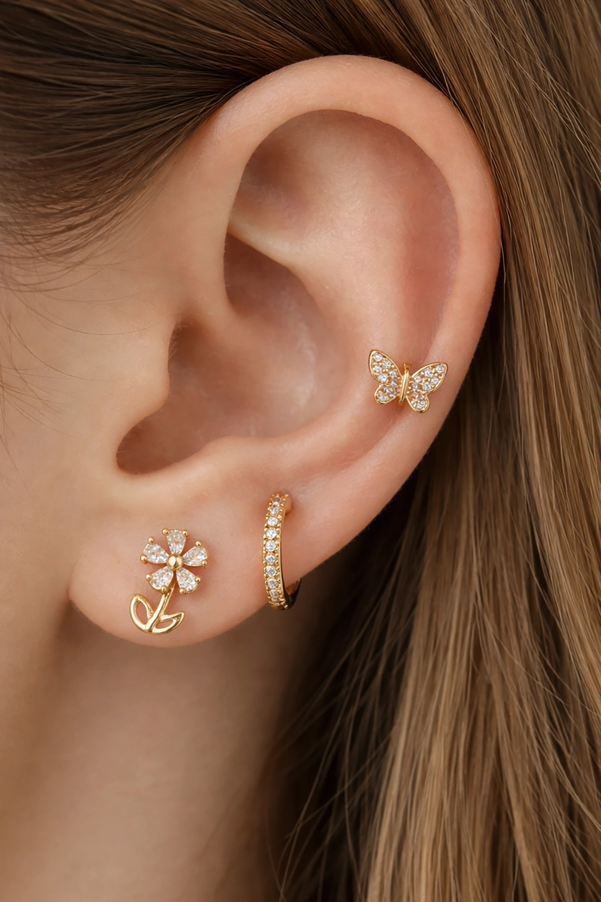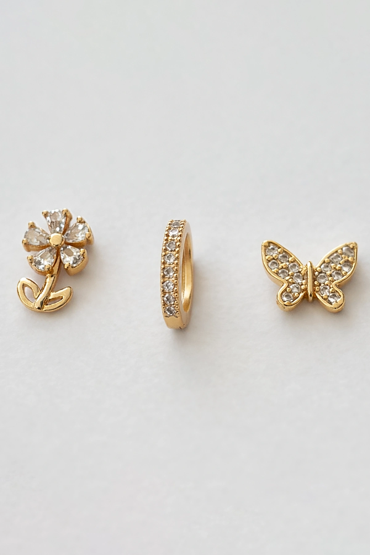 Altın Renk Karışık Figürlü Taş Detaylı 3'lü YSX Küpe Set