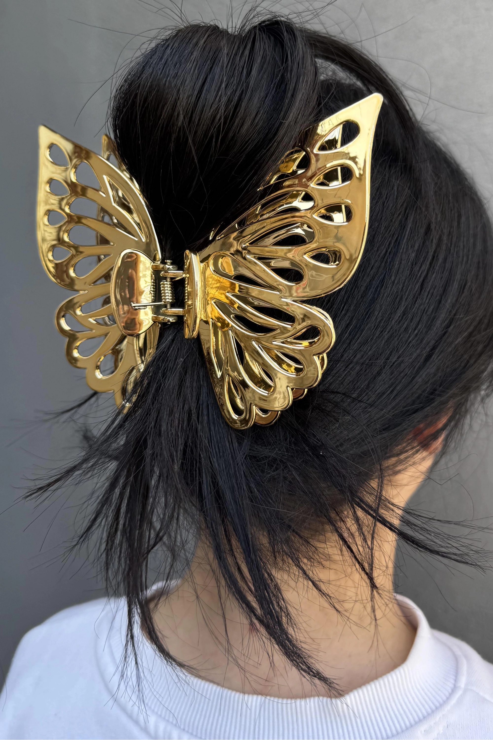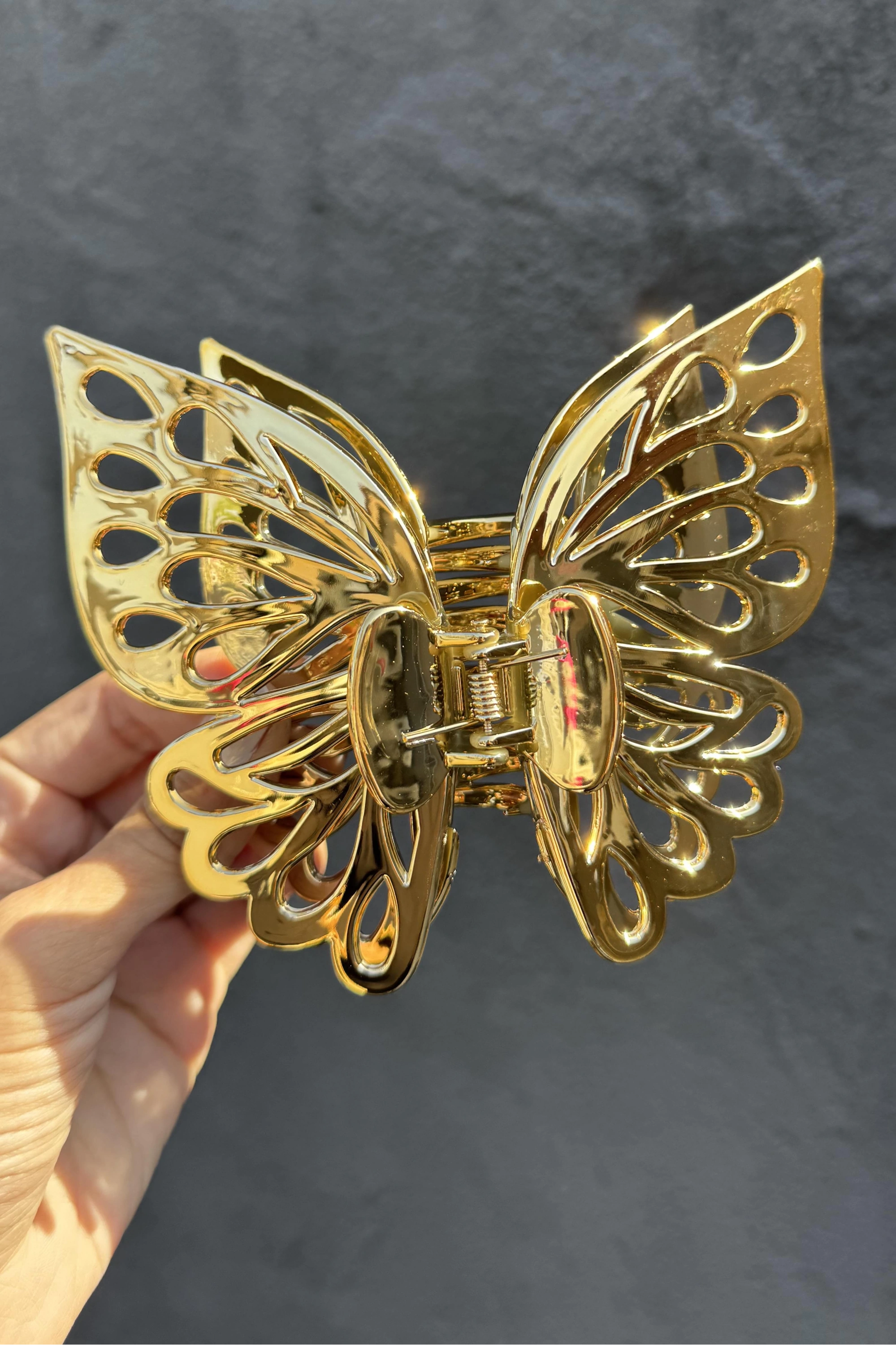 - Genç ve dinamik tarzınızı yansıtan gümüş renkli kelebek detaylı toka, günlük kullanımda şıklığınızı tamamlar.