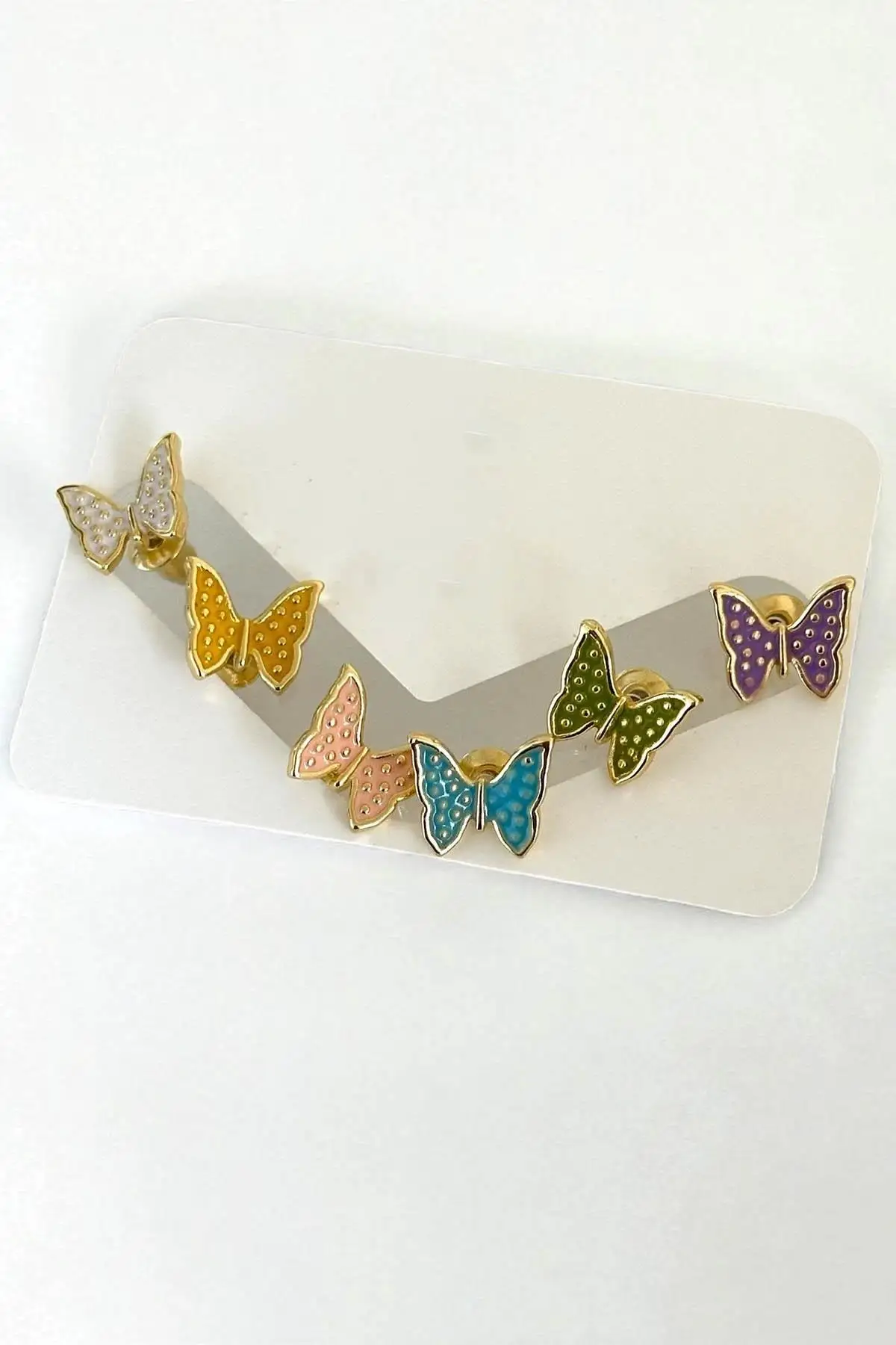 Altın Renk Kelebek Figürlü Taş Detaylı 6'lı Küpe Set