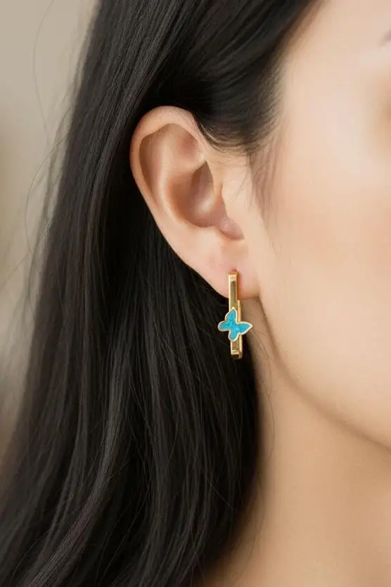 Altın Renk Kelebek Figürlü Çelik Küpe (Çift)