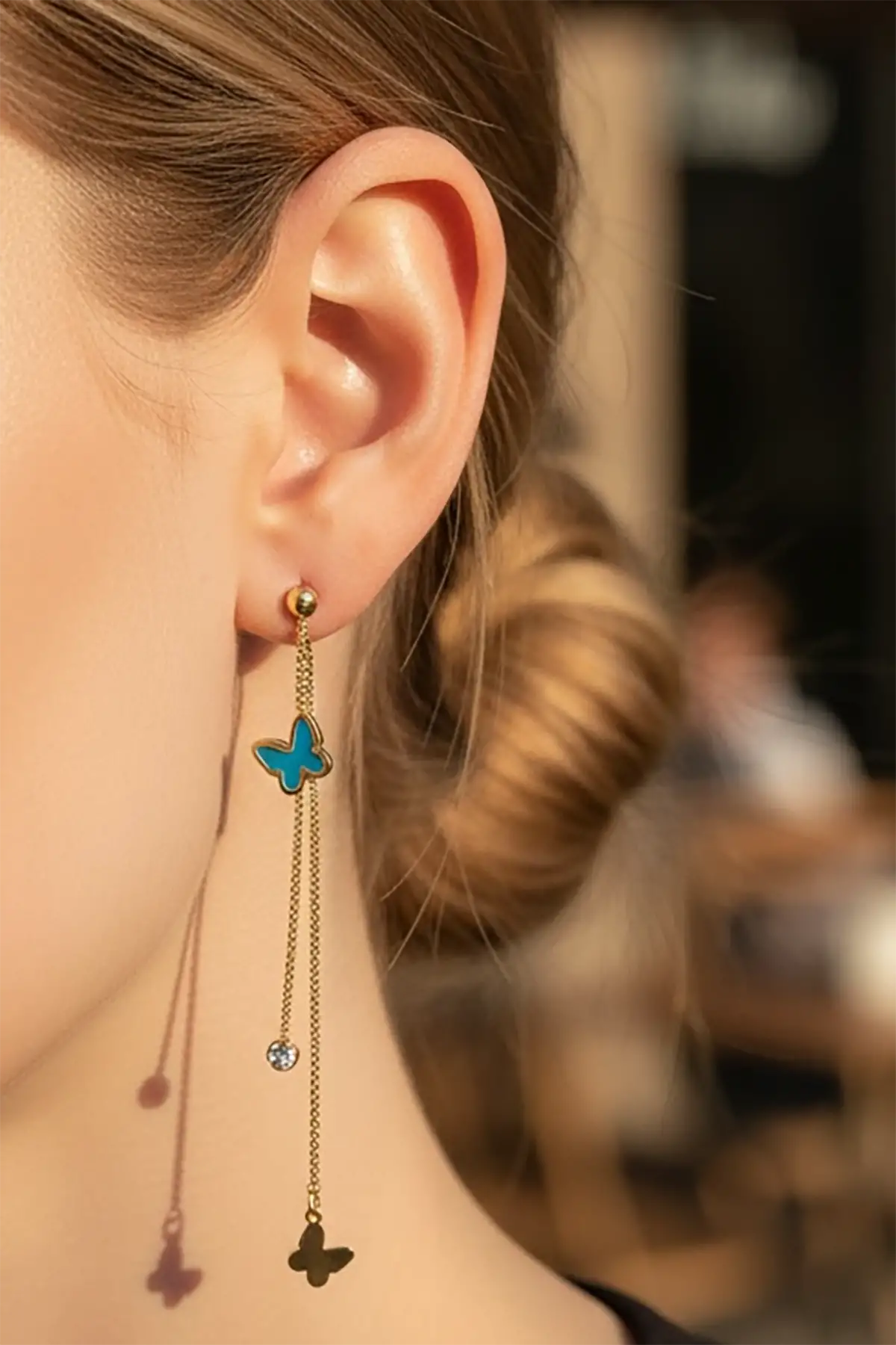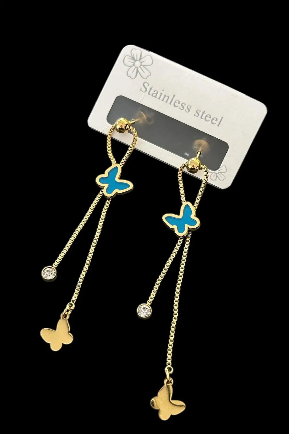 Altın Renk Kelebek Figürlü Çelik Küpe (Çift)