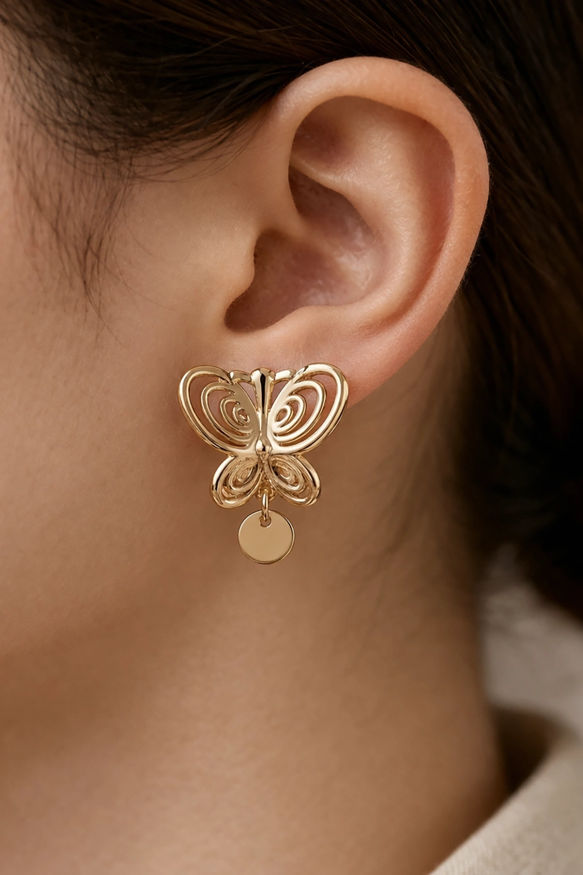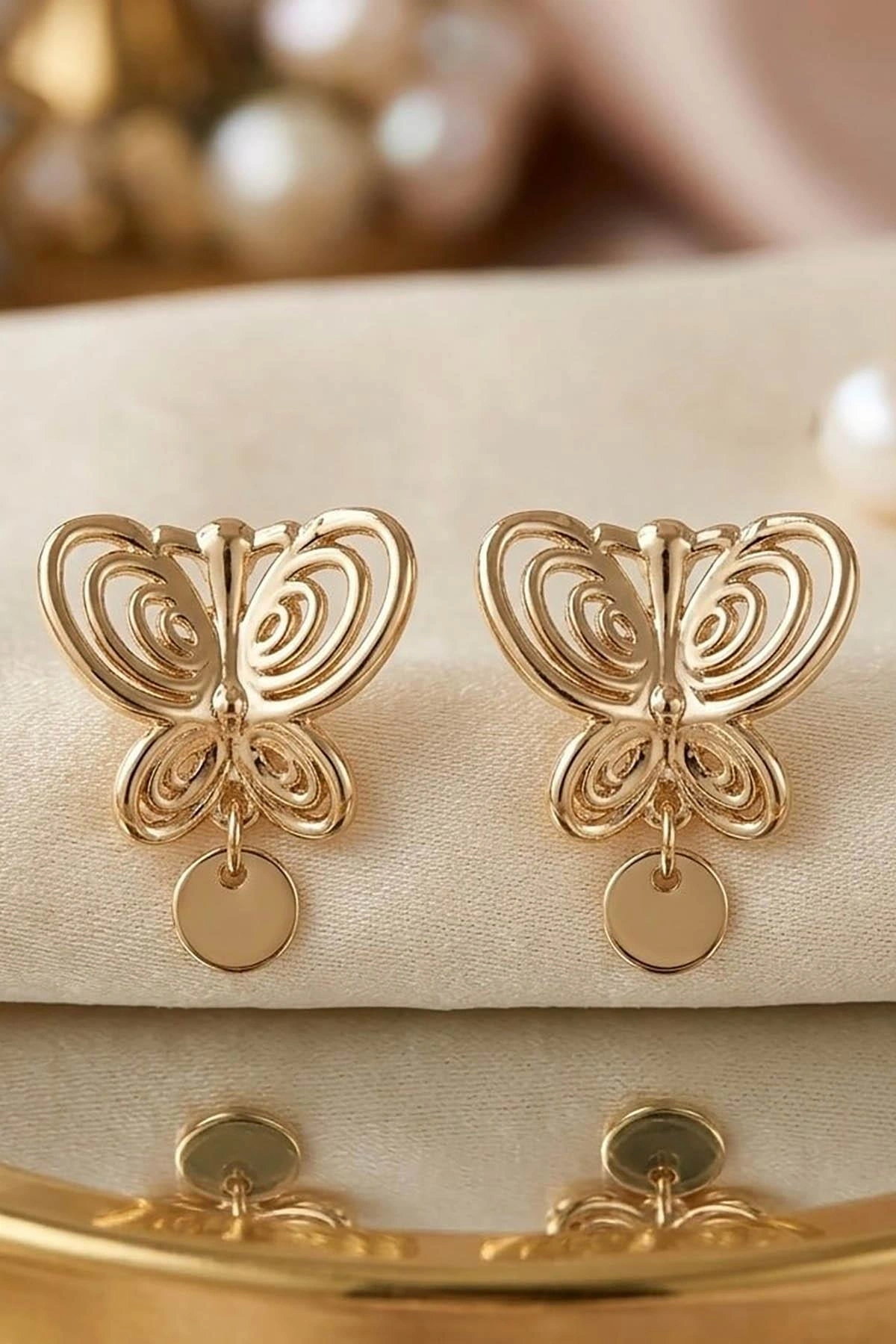 Altın Renk Kelebek Figürlü Füsun Küpe (Çift)