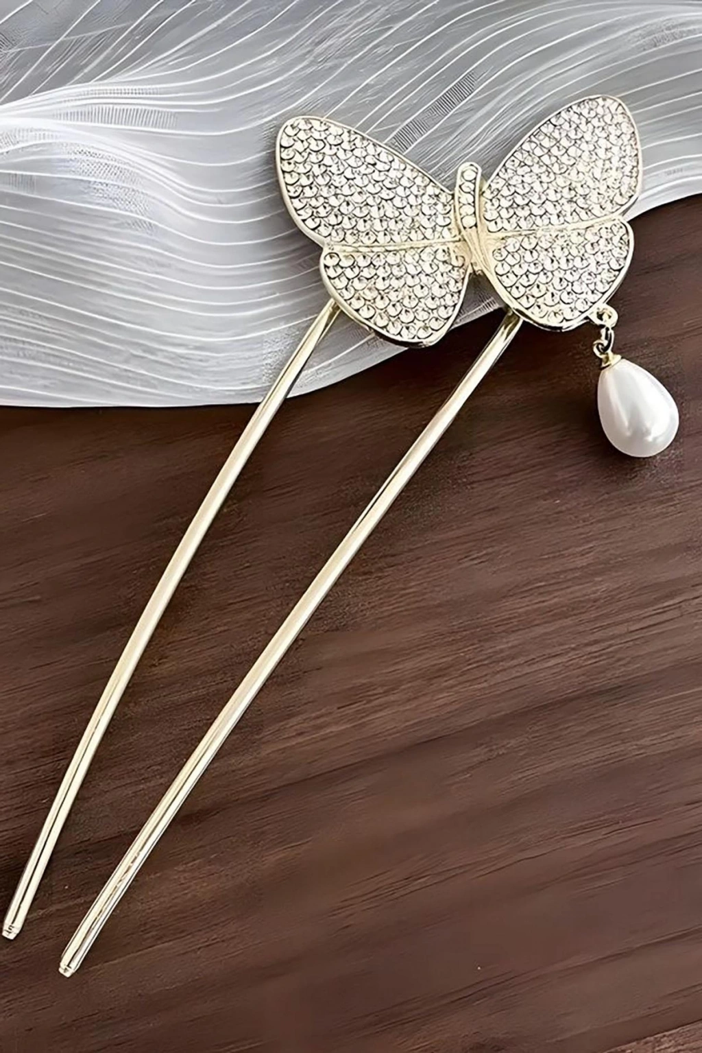 Altın Renk Kelebek Figürlü İnci Detaylı Metal Topuz Tokası/ Kalemi