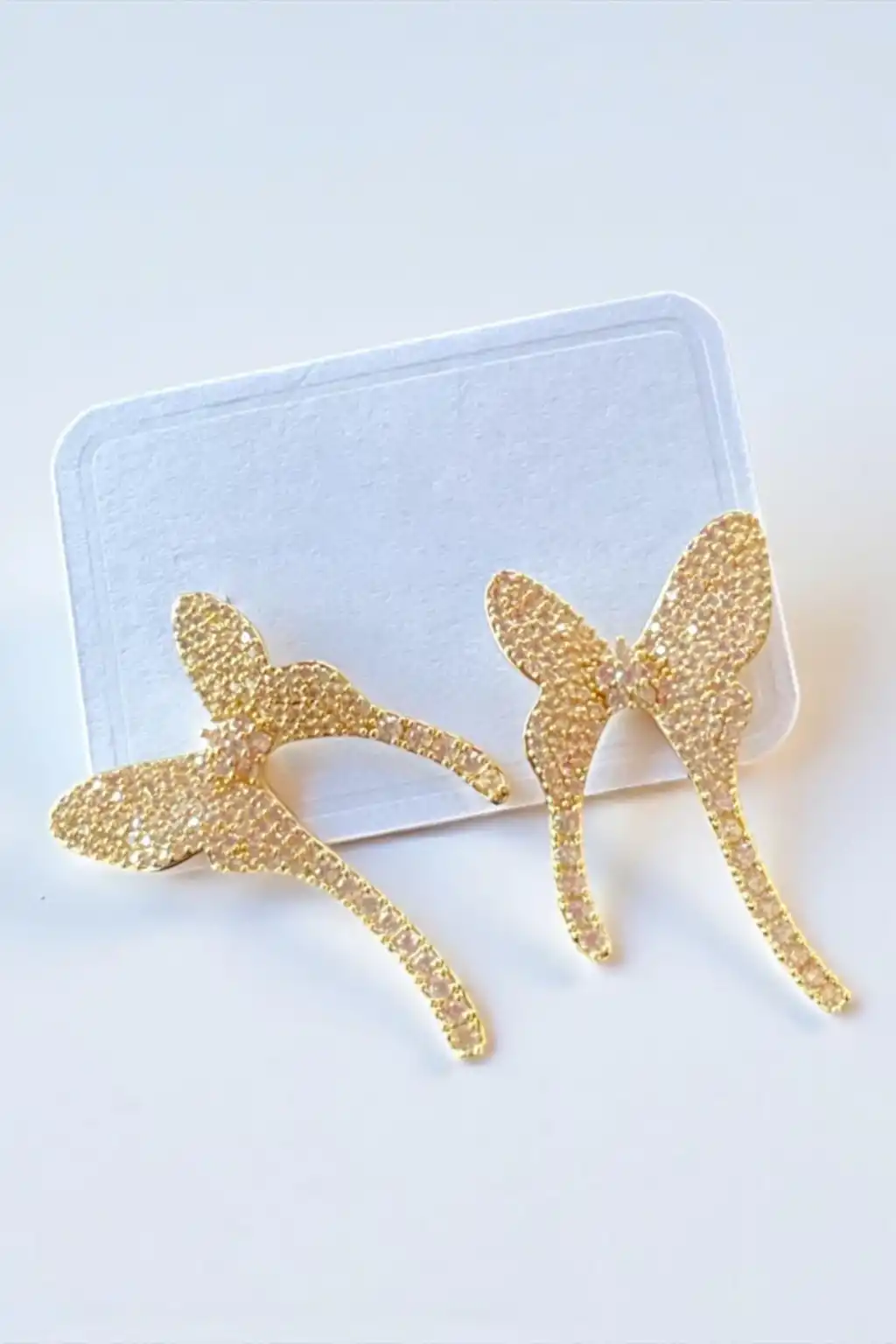 Altın Renk Kelebek Figürlü Küpe (Çift)