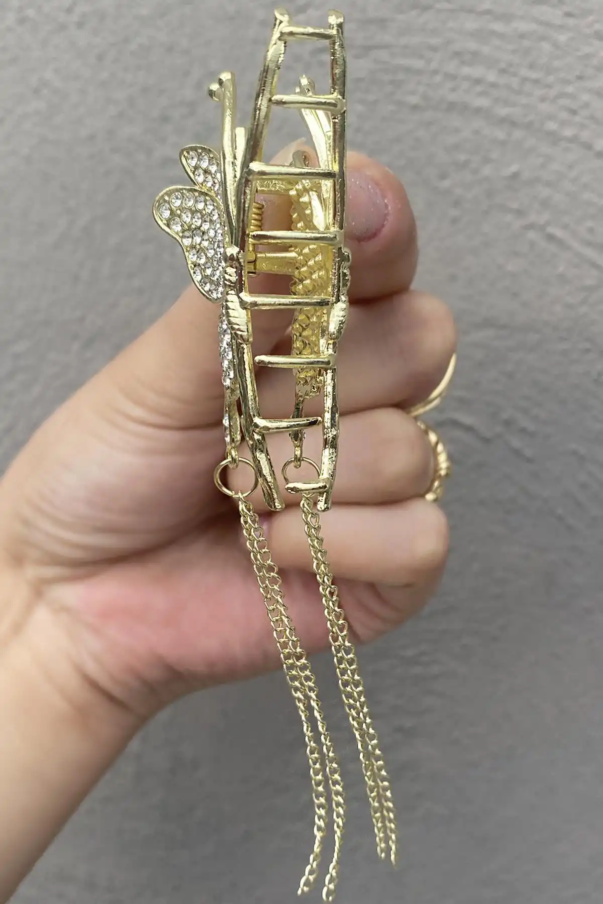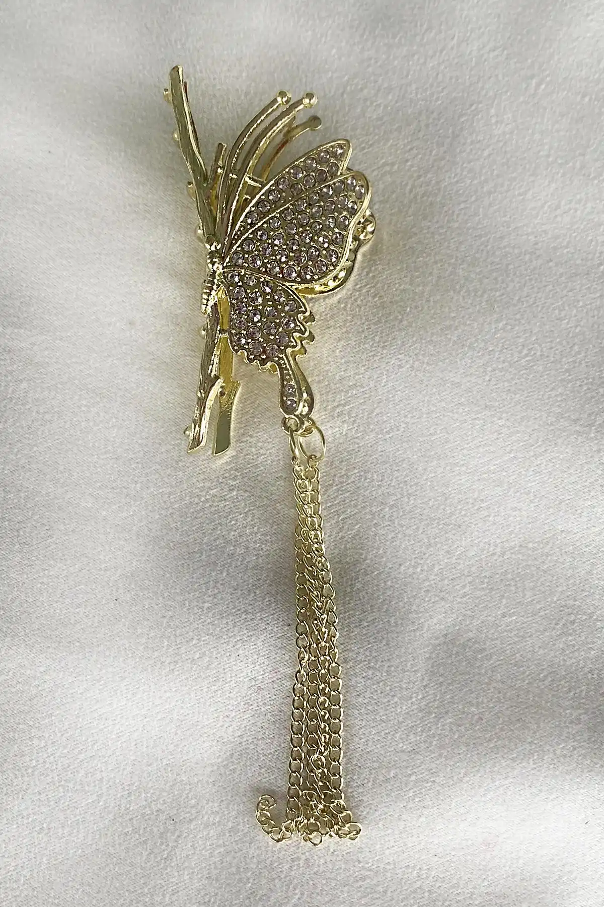 Altın Renk Taş Detaylı Mini Metal Mandal Toka