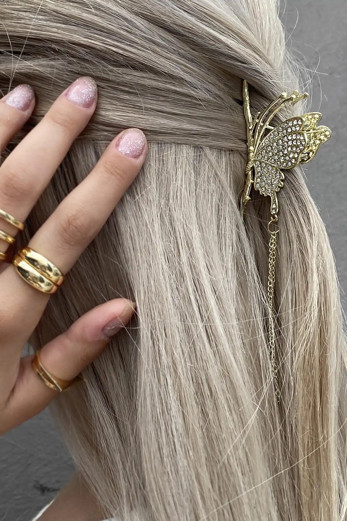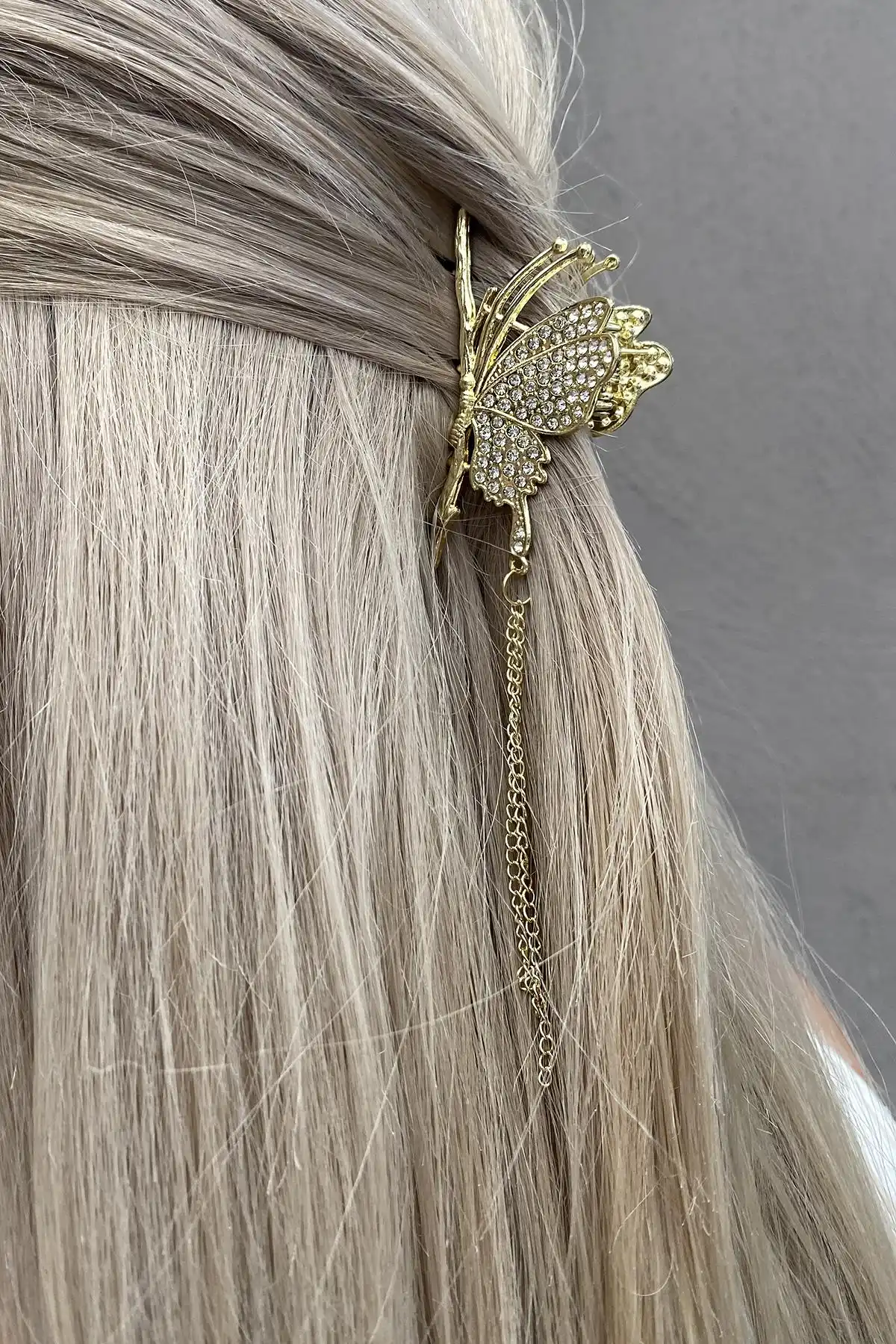 Siyah Renk Dağınık Topuz Efektli Saç Eklentisi Kelebek Figürlü Mandal Toka