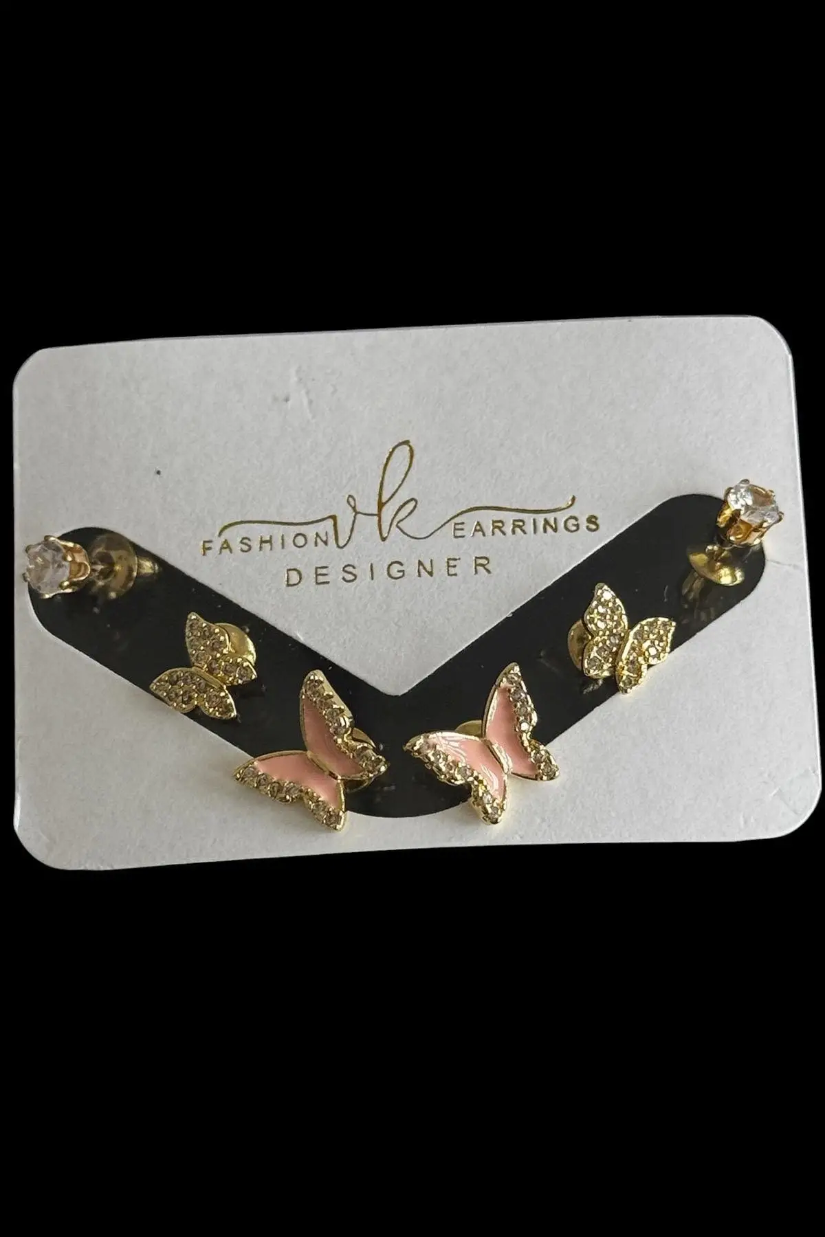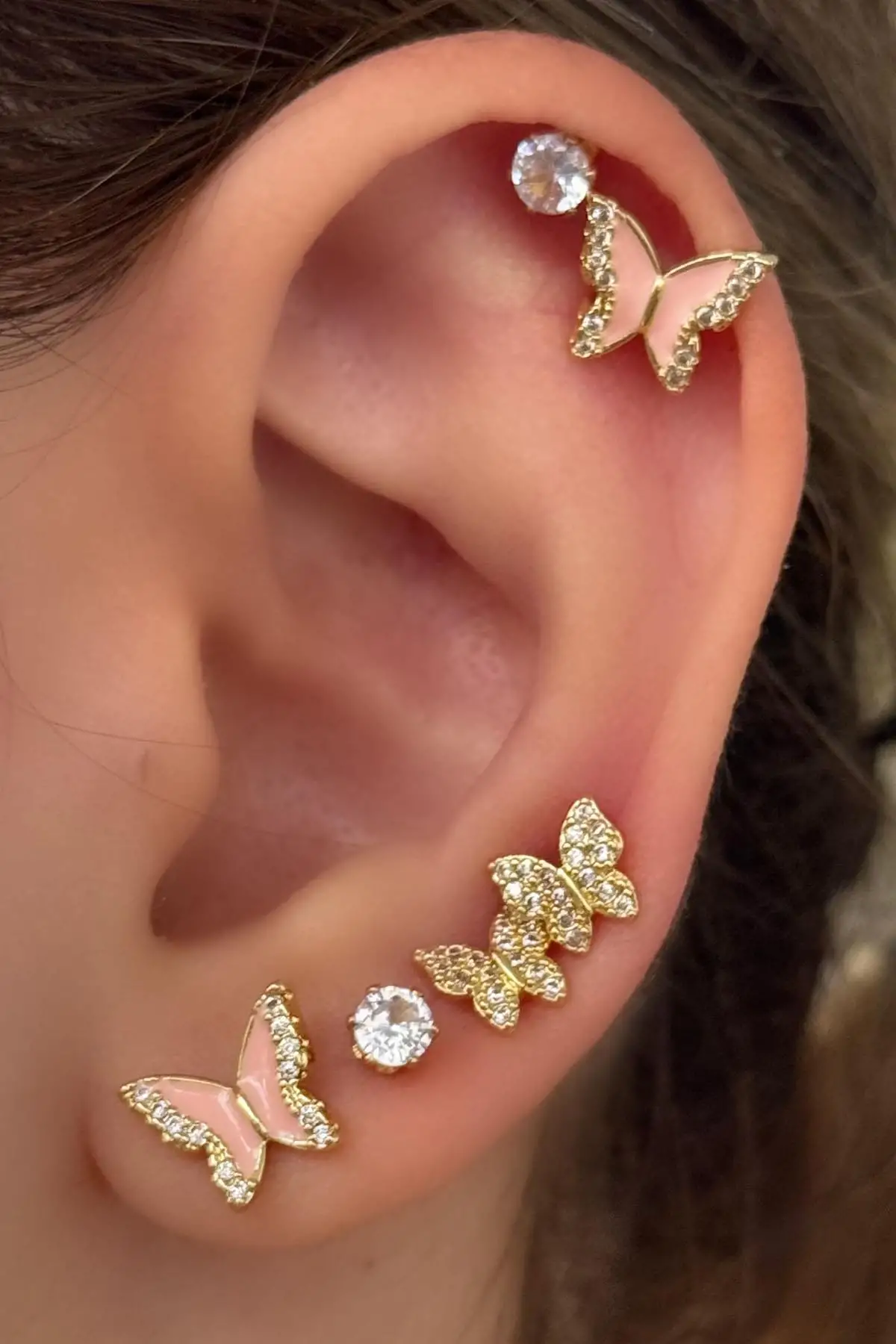 Altın Renk Kelebek Figürlü Taş Detaylı 6'lı Küpe Set