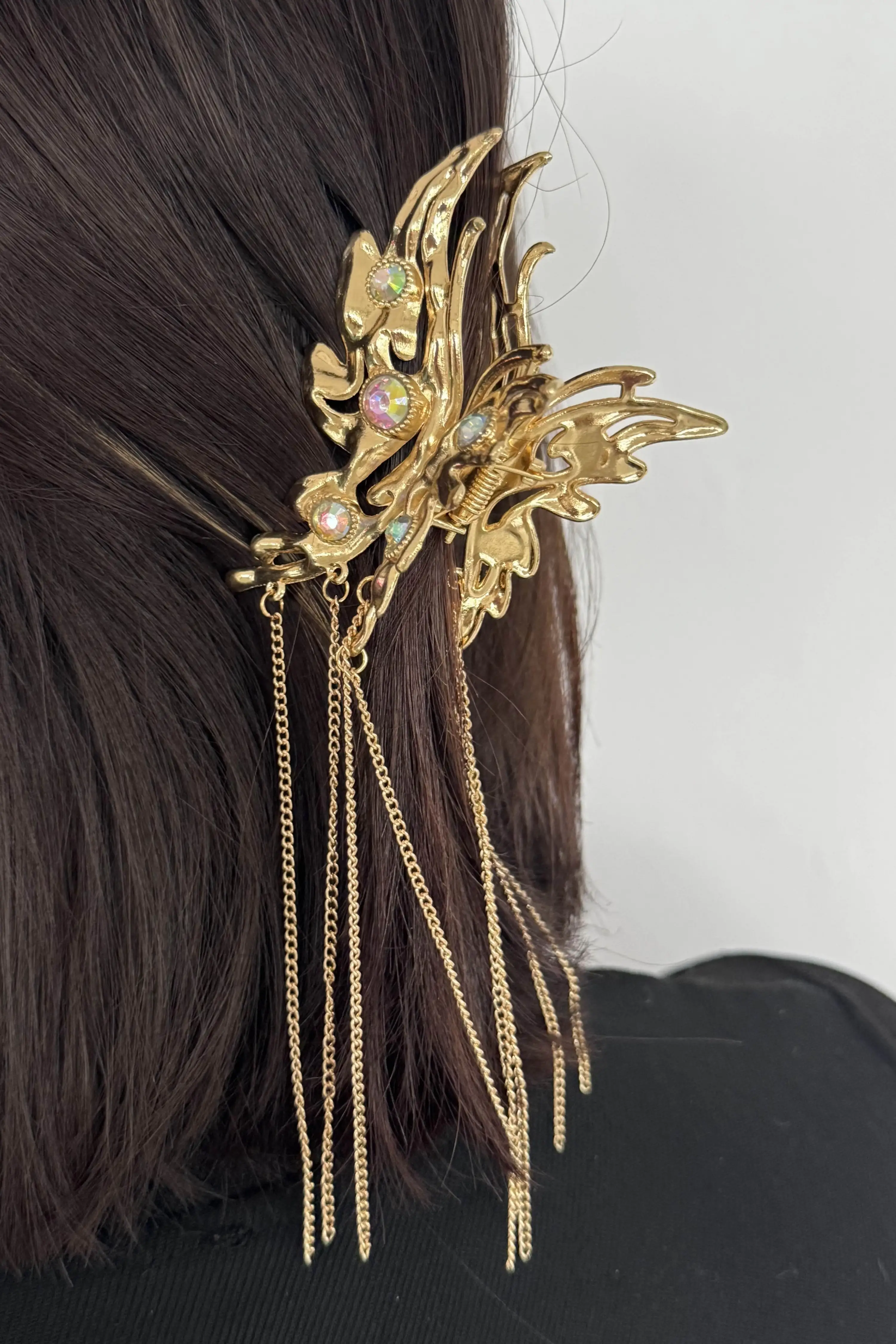 Altın Renk Kelebek Figürlü Taş Detaylı Sallantılı Metal Mandal Toka