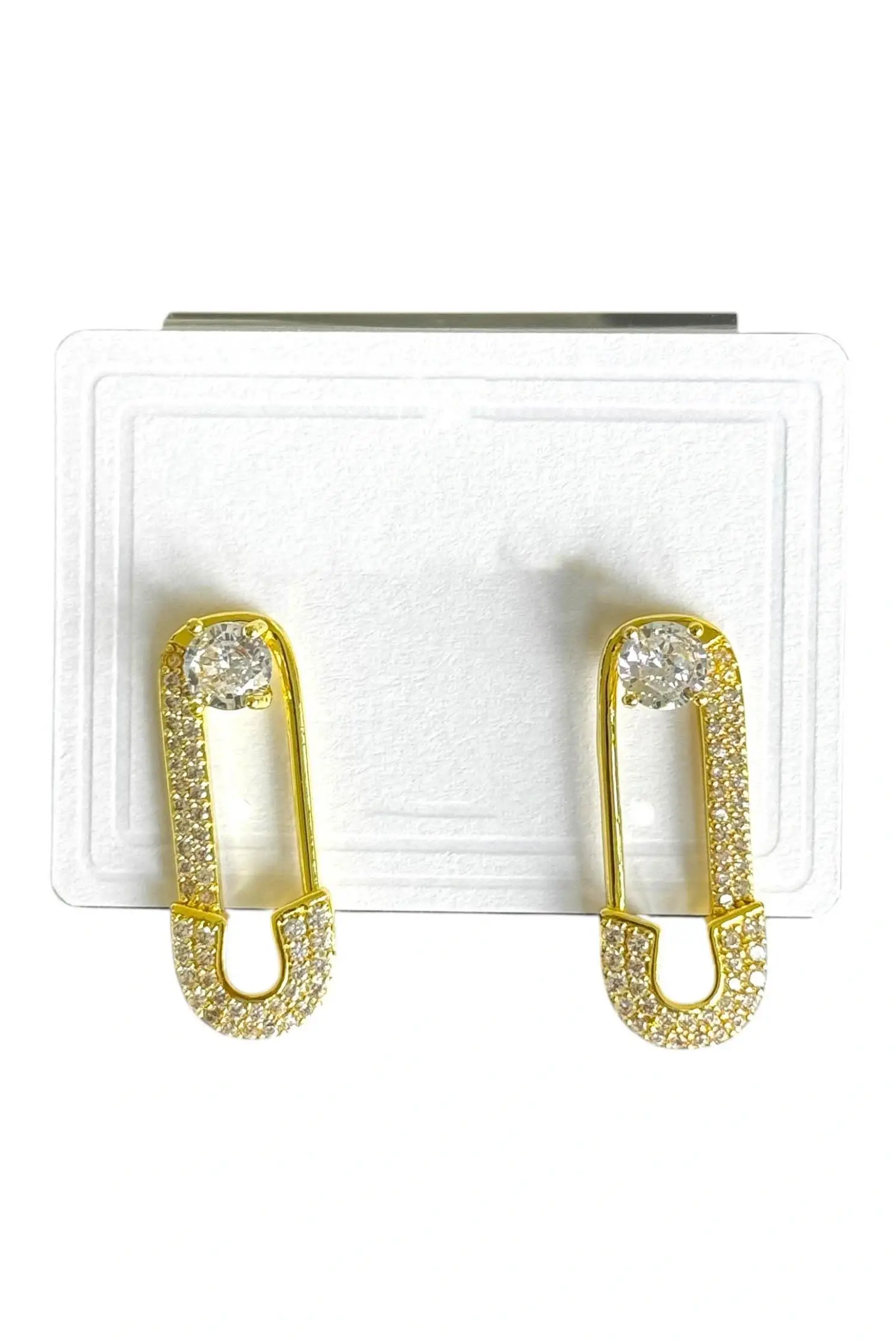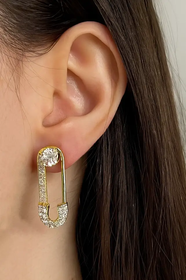 Altın Renk Kilit Figürlü Taş Detaylı Küpe (Çift)