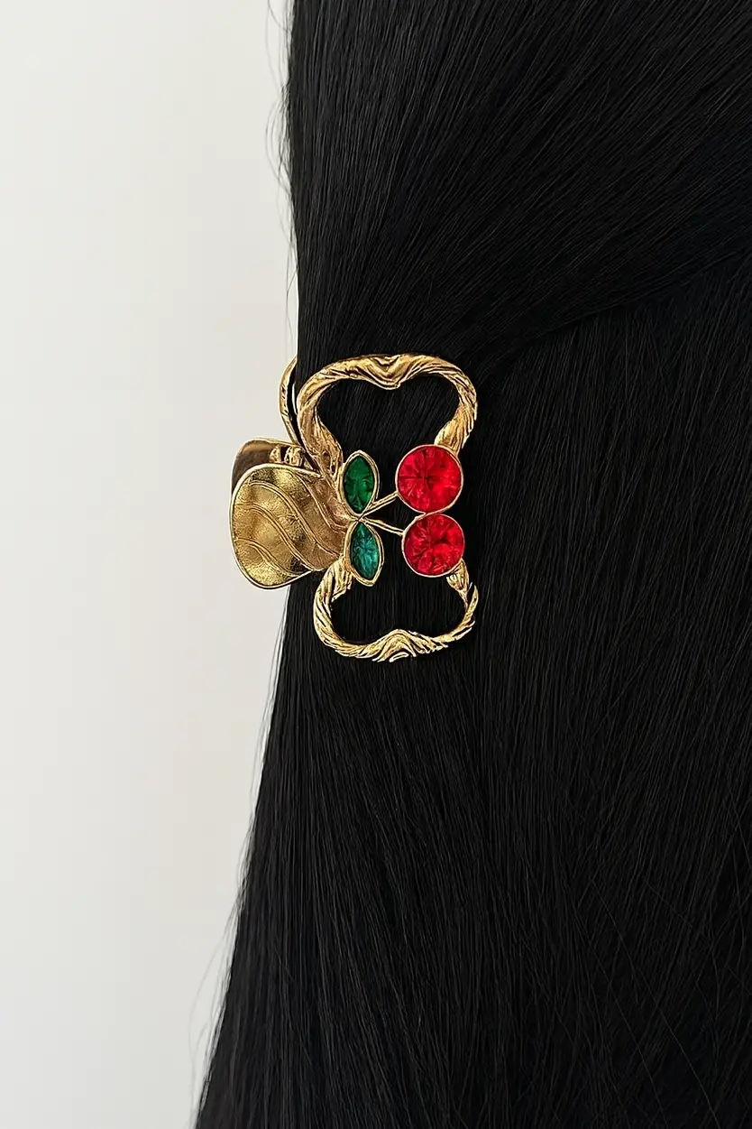 Altın Renk Kiraz Figürlü Metal Mini Mandal Toka