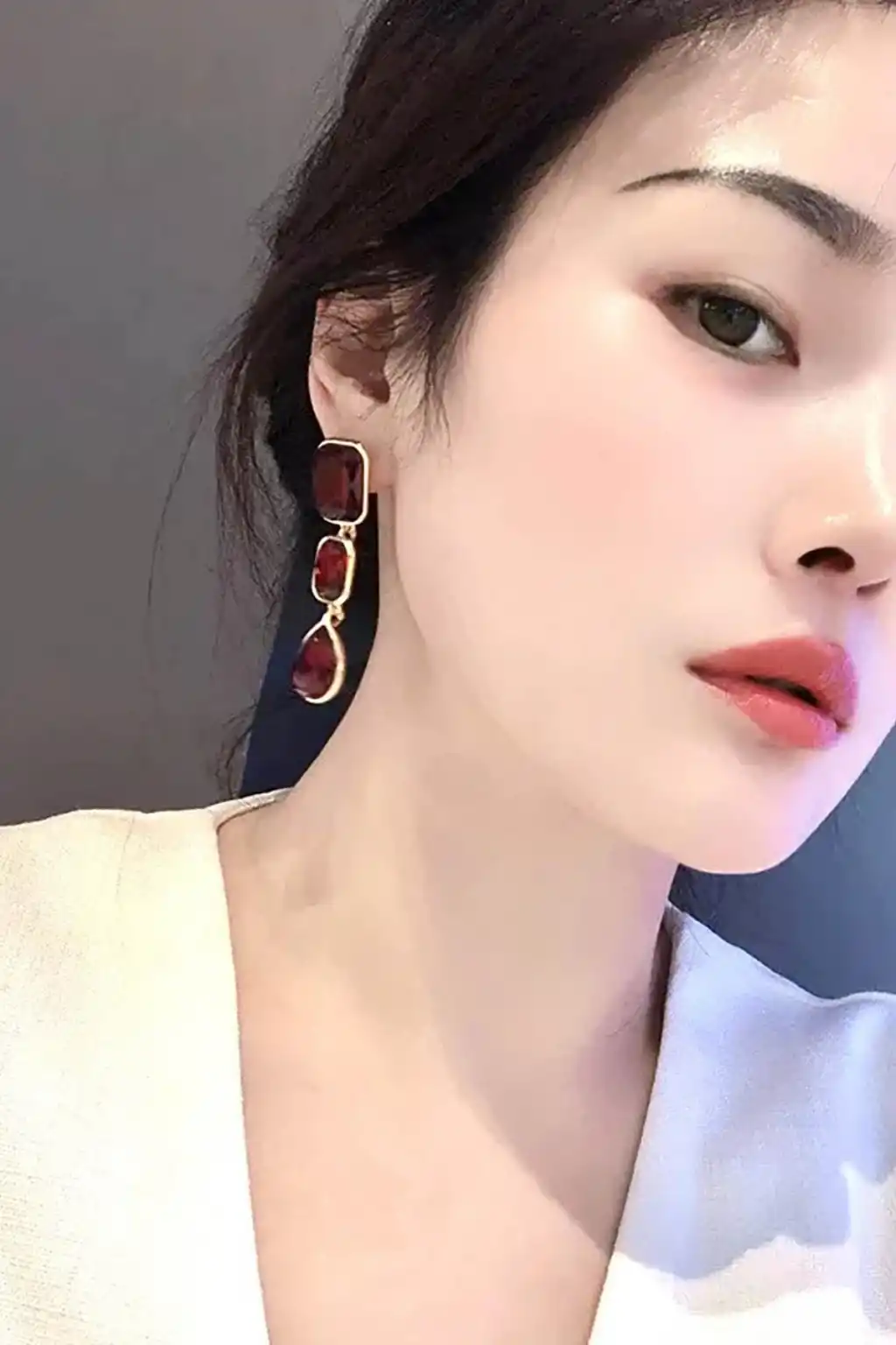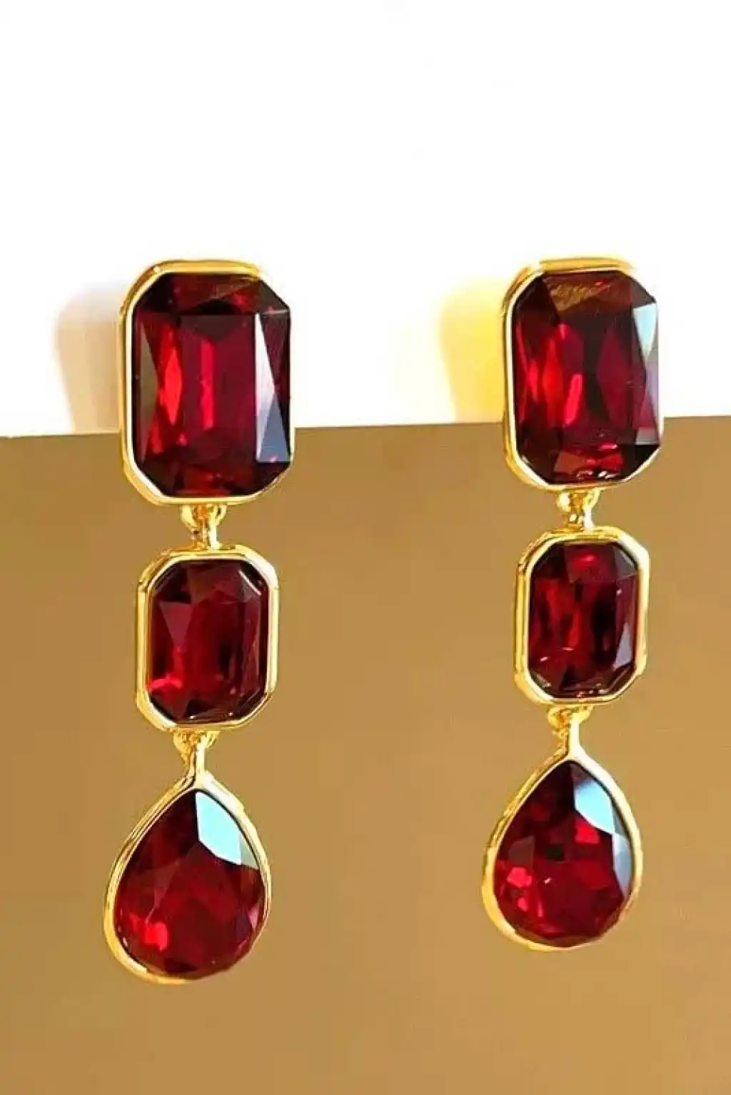 Altın Renk Kırmızı Taş Detaylı Çelik Küpe (Çift)