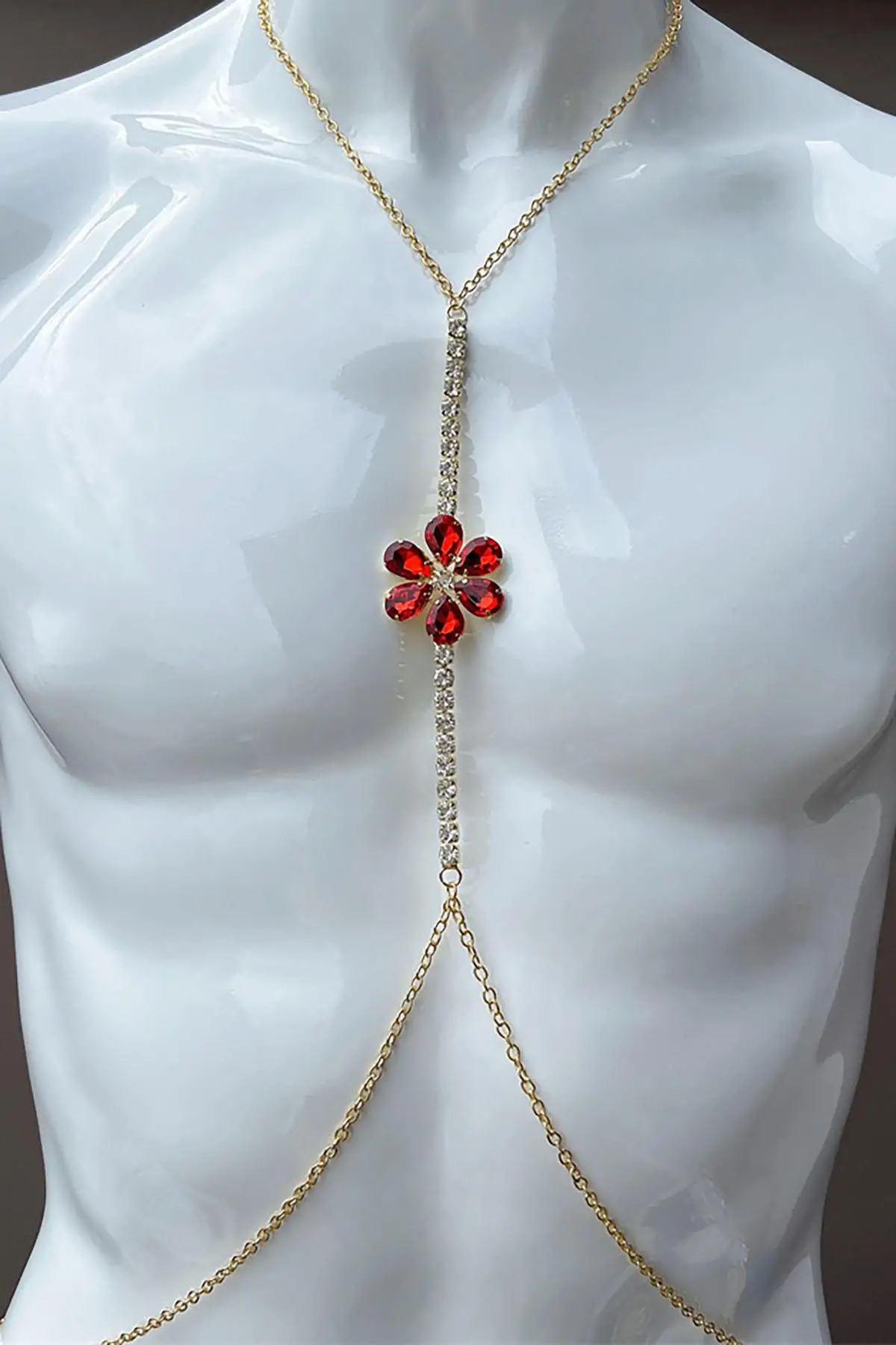 Altın Renk Kırmızı Taş Detaylı Tasarım Vücut Aksesuar