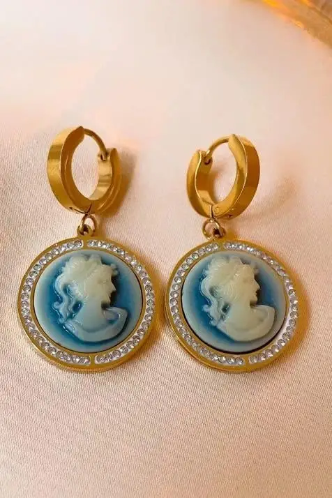 Altın Renk Kız Figürlü Çelik Küpe (Çift)