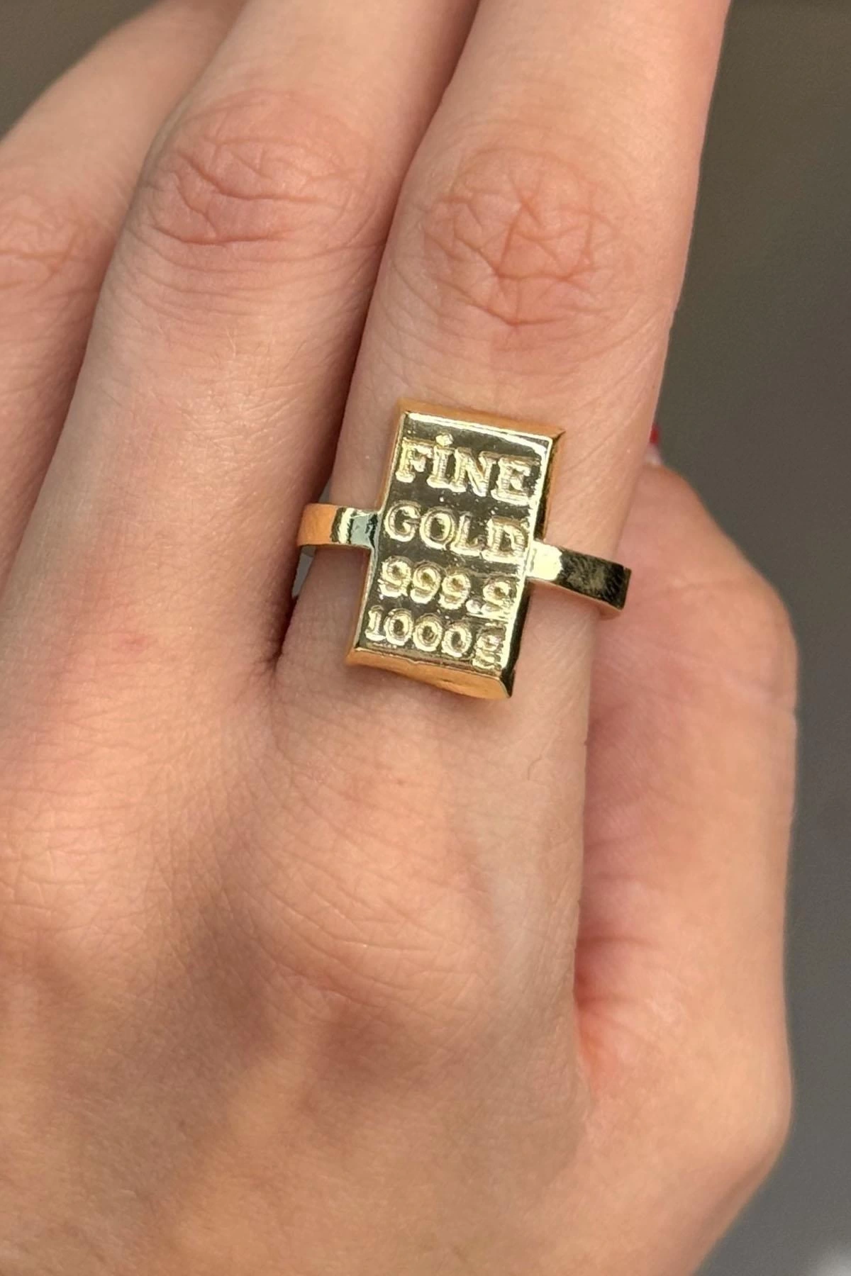 Altın Renk Külçe Figürlü Ayarlanabilir Yüzük