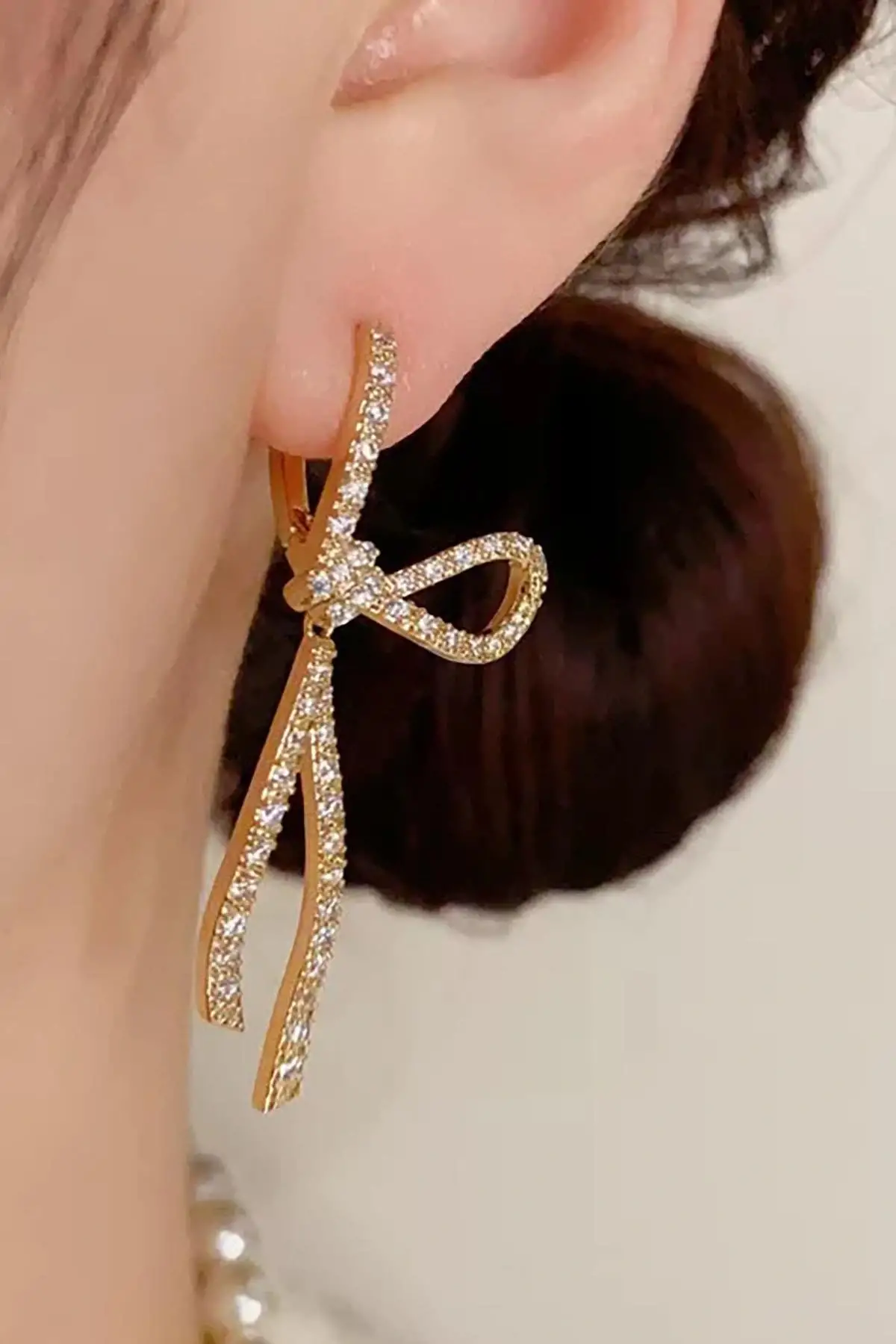 Altın Renk Kurdele Figürlü 14k Altın Kaplama Küpe (Çift)
