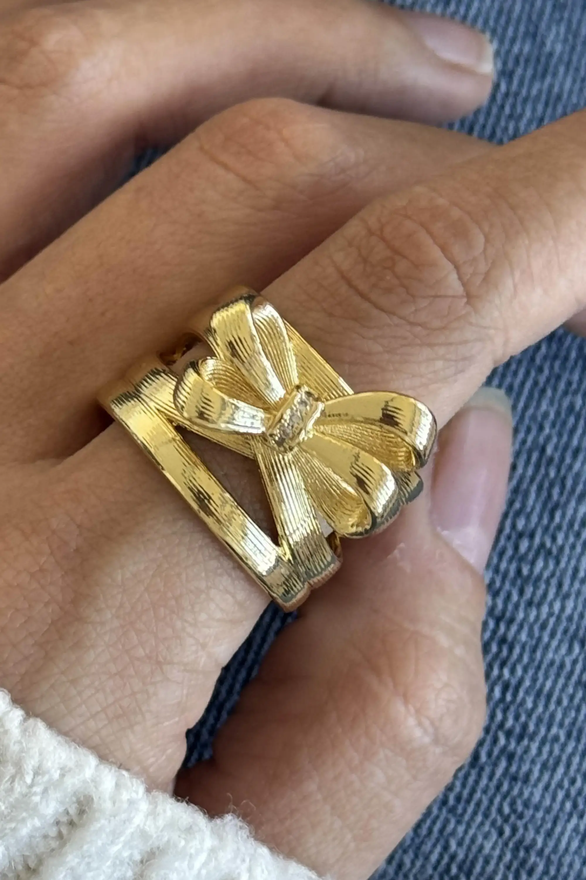 Altın Renk Kurdele Figürlü Ayarlanabilir Çelik Yüzük