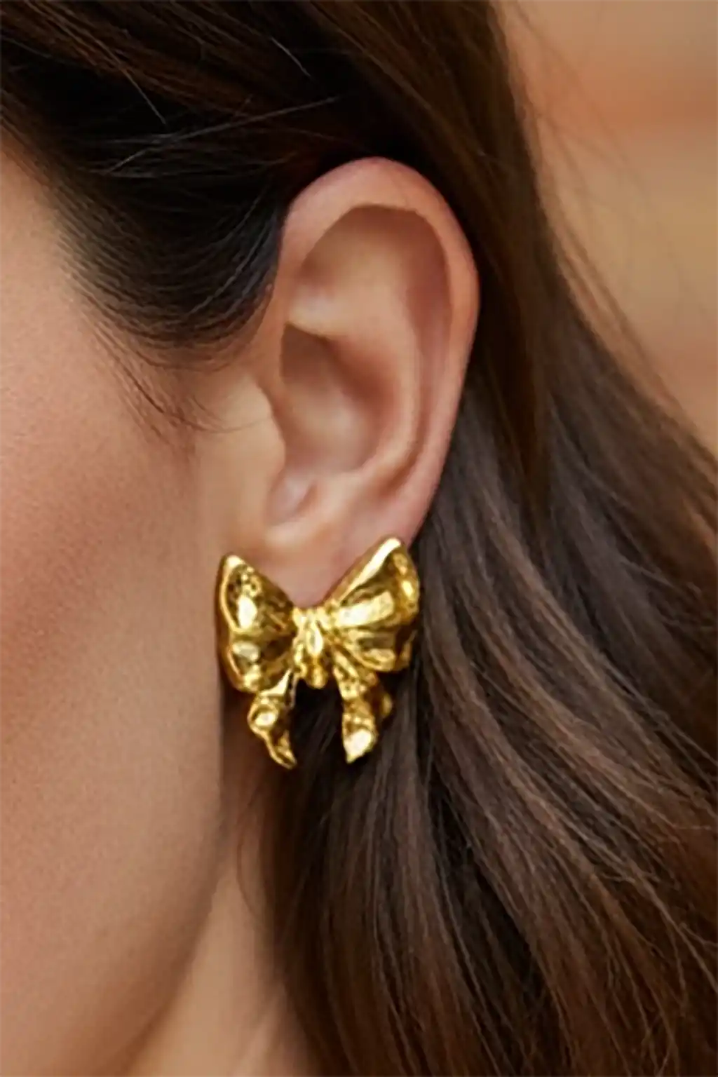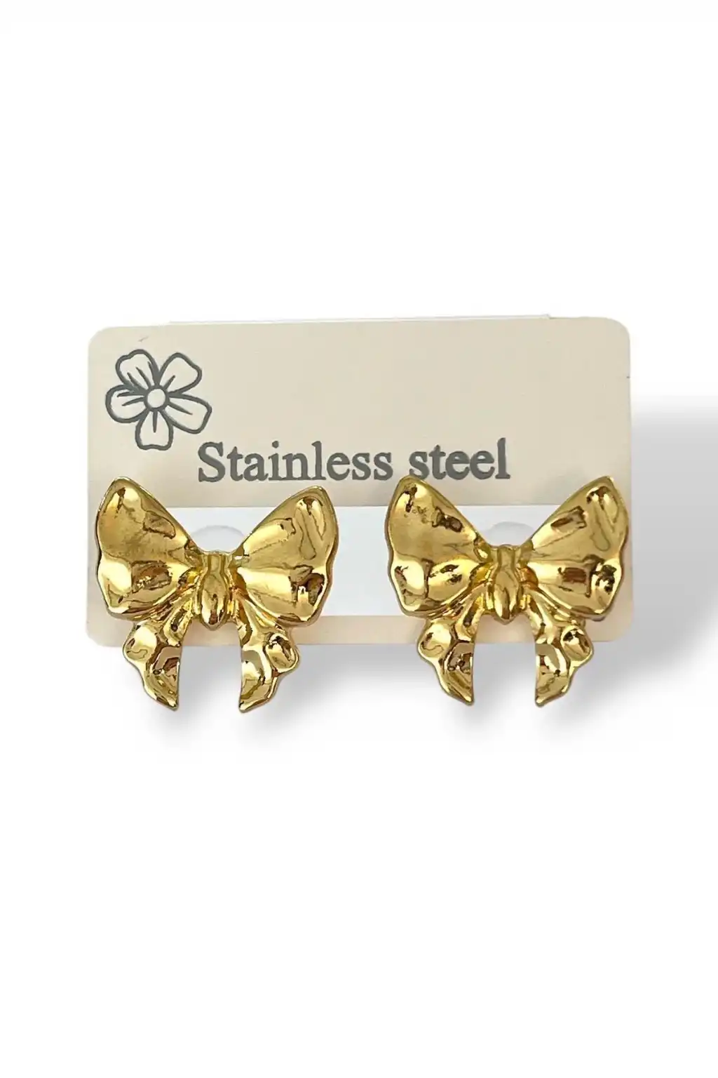 Altın Renk Kurdele Figürlü Çelik Küpe (Çift)