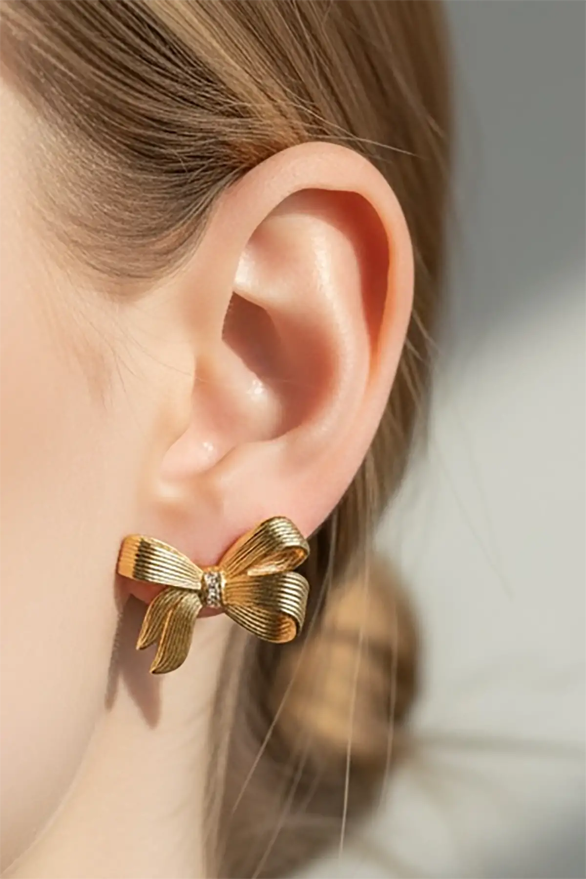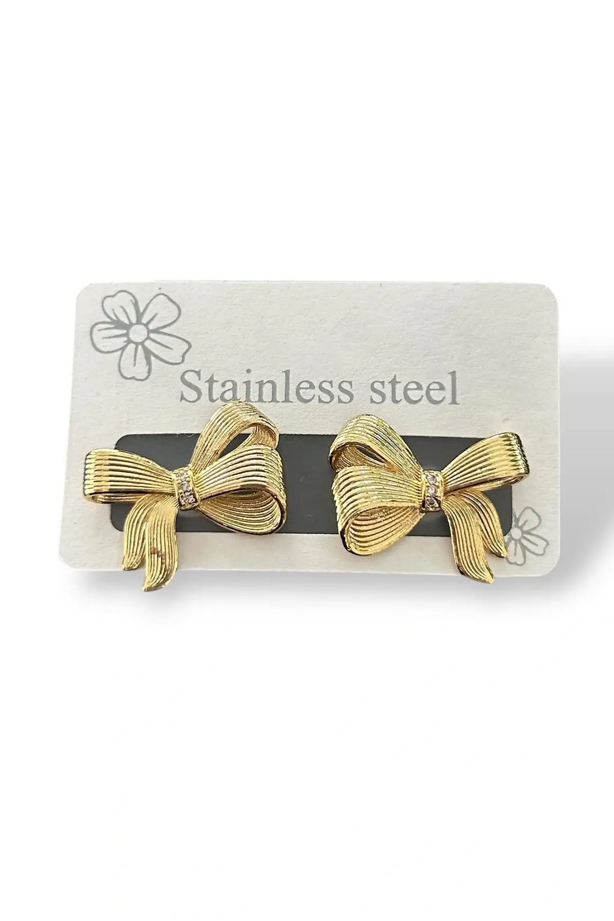 Altın Renk Kurdele Figürlü Çelik Küpe (Çift)