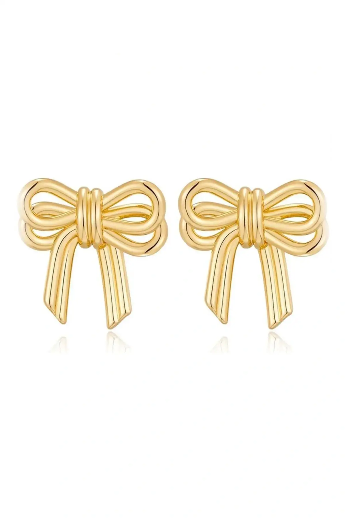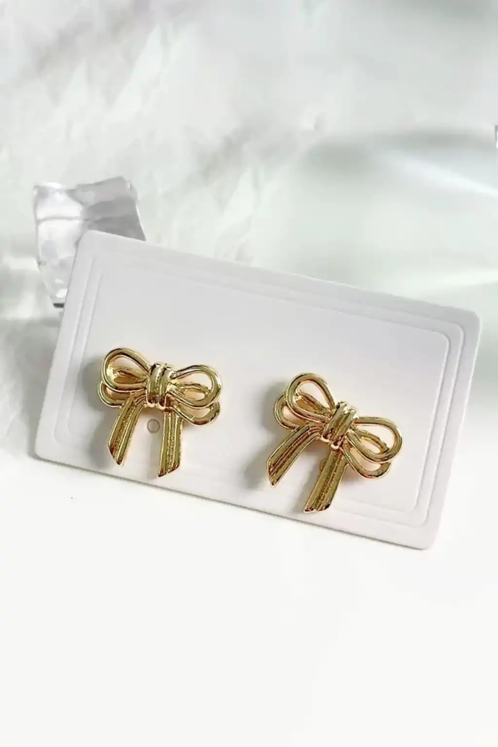 Altın Renk Kurdele Figürlü Çelik Küpe (Çift)