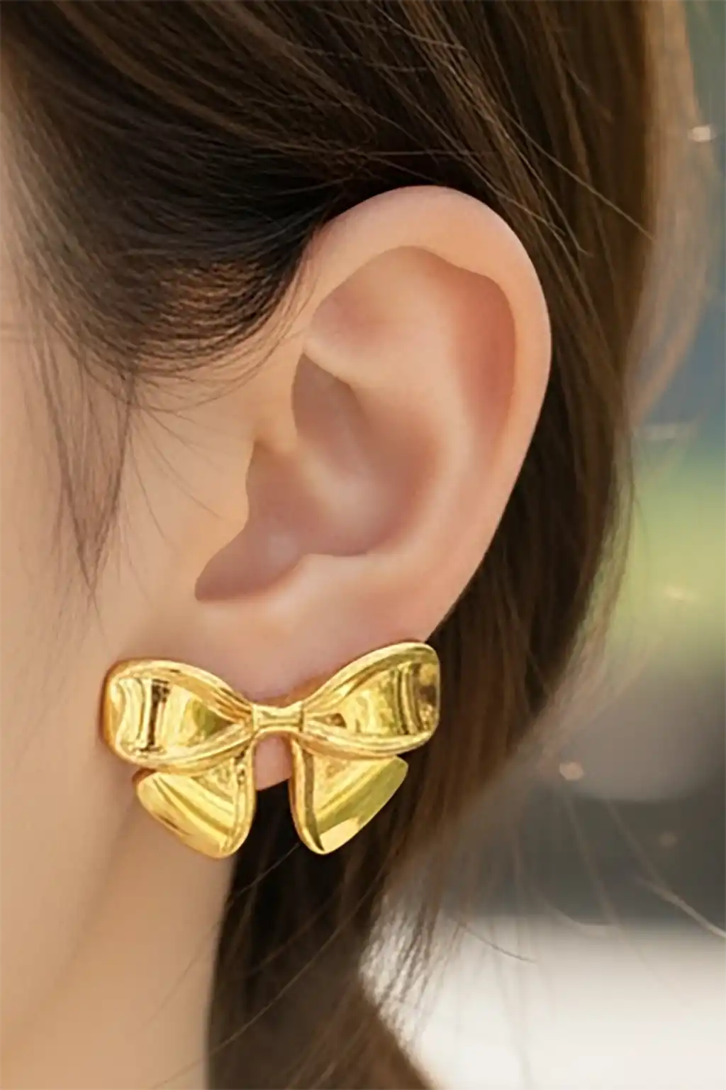 Altın Renk Kurdele Figürlü Çelik Küpe (Çift)