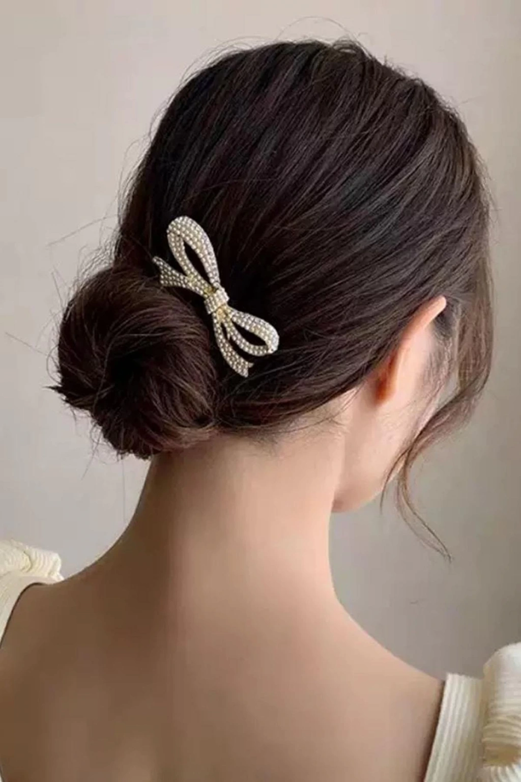 Altın Renk İnci Detaylı Sallantılı Topuz Toka