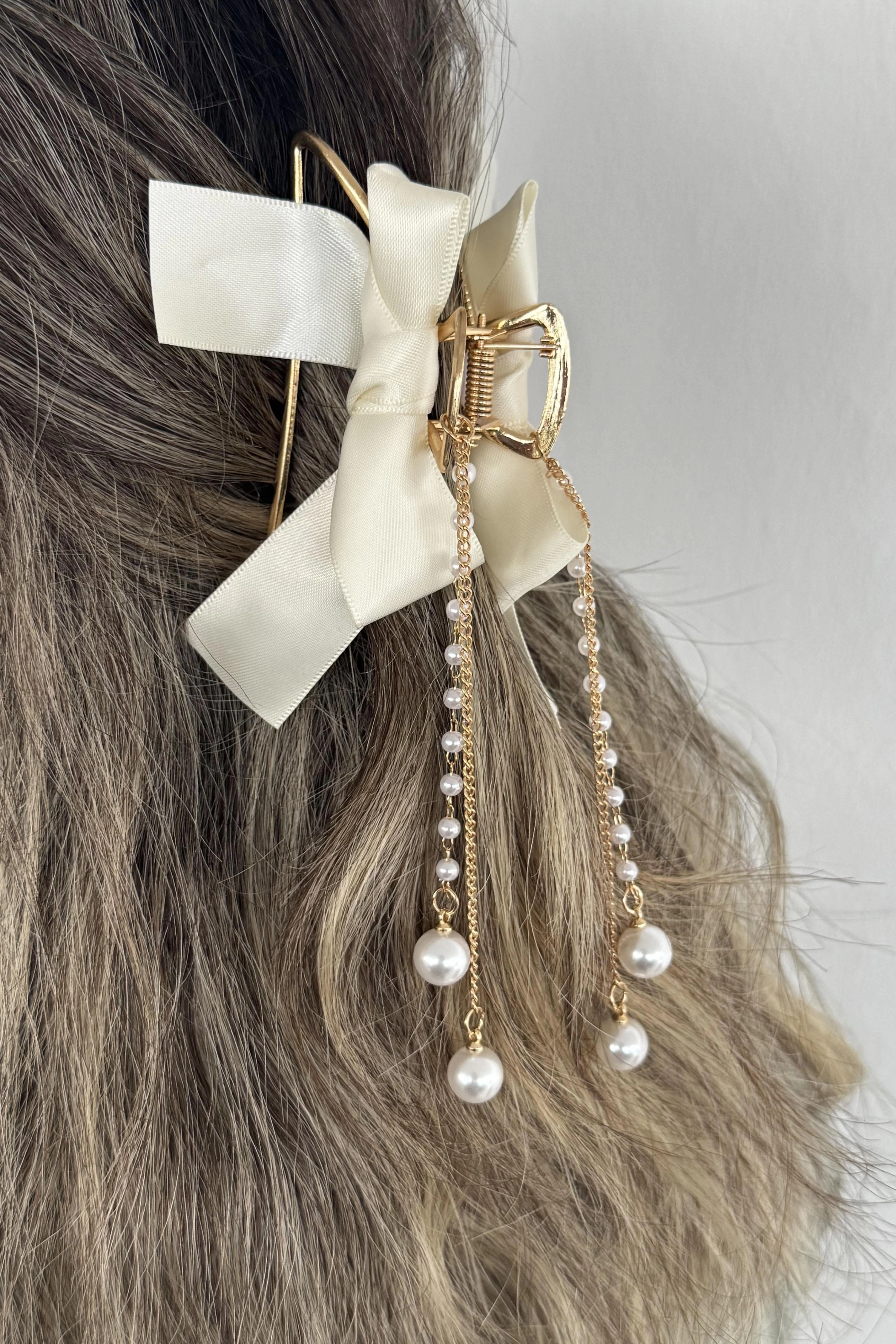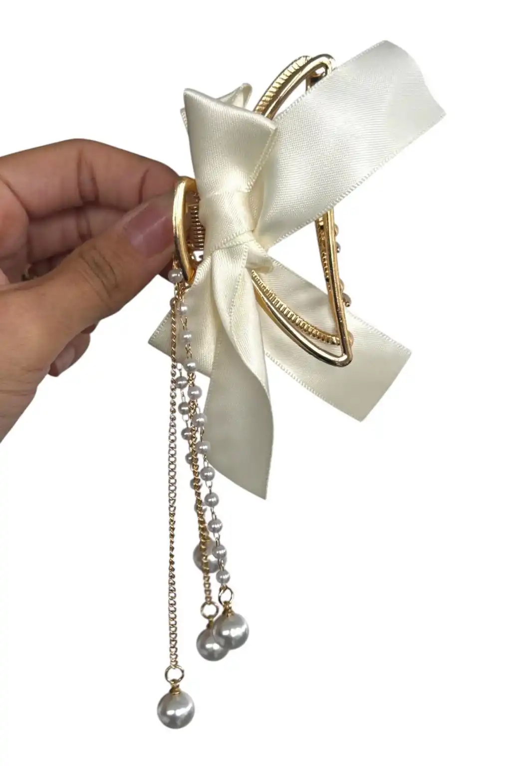 Krem Renk Kurdele Figürlü İnci Detaylı Mandal Toka