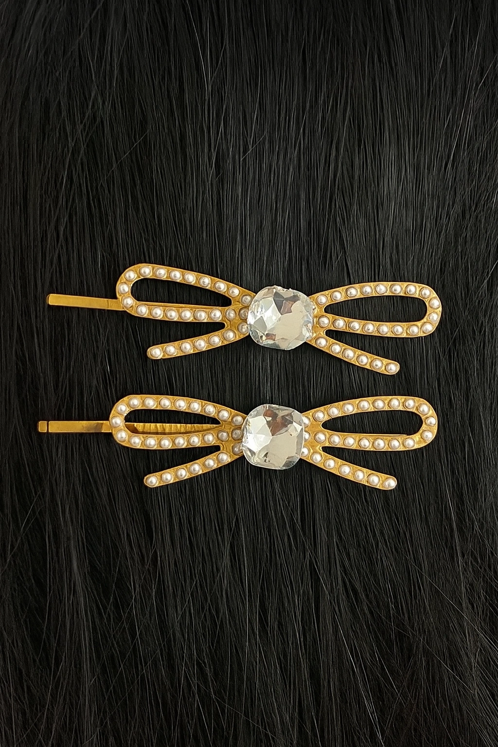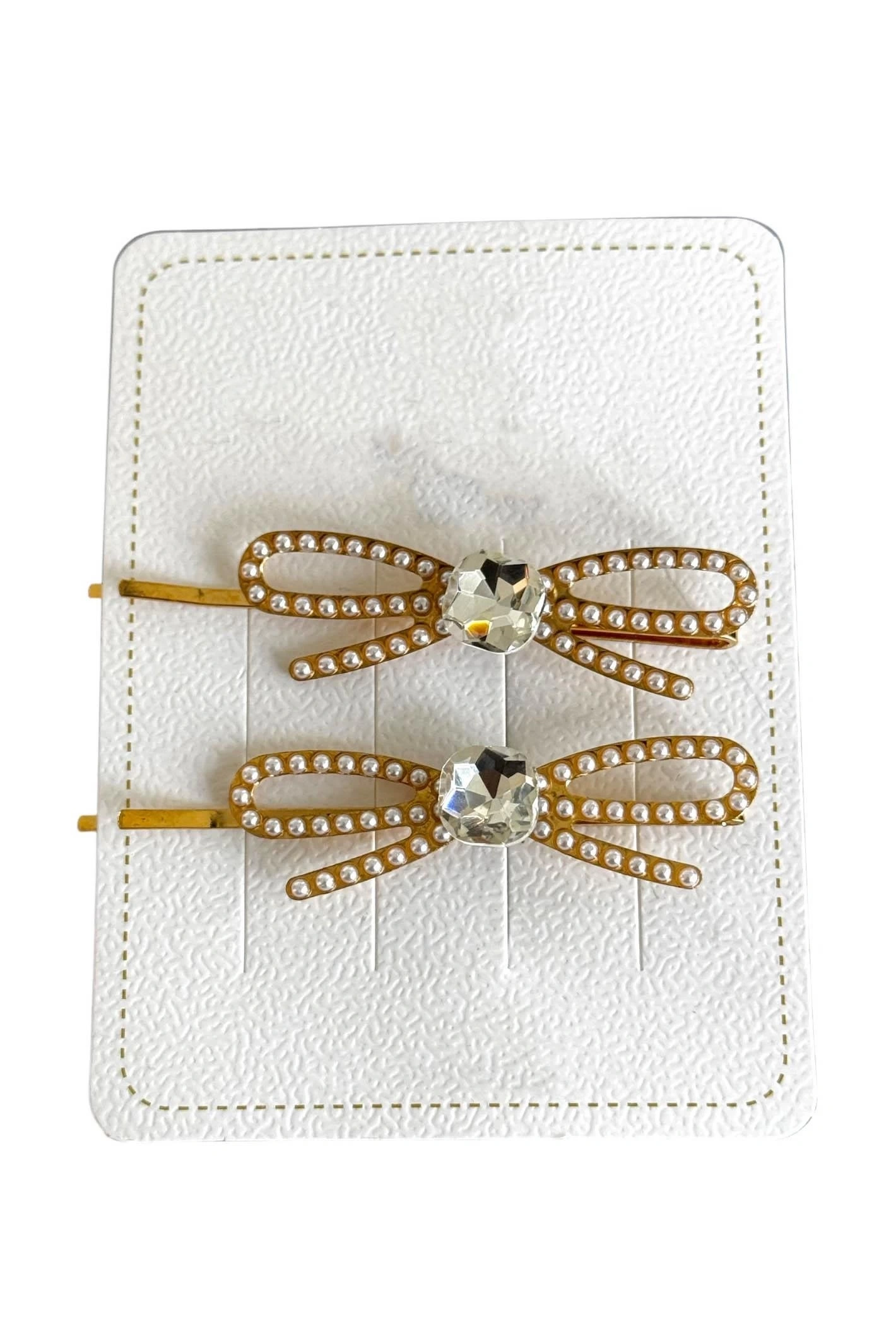 Altın Renk Kurdele Figürlü Taş Detaylı 2'li Yan Toka