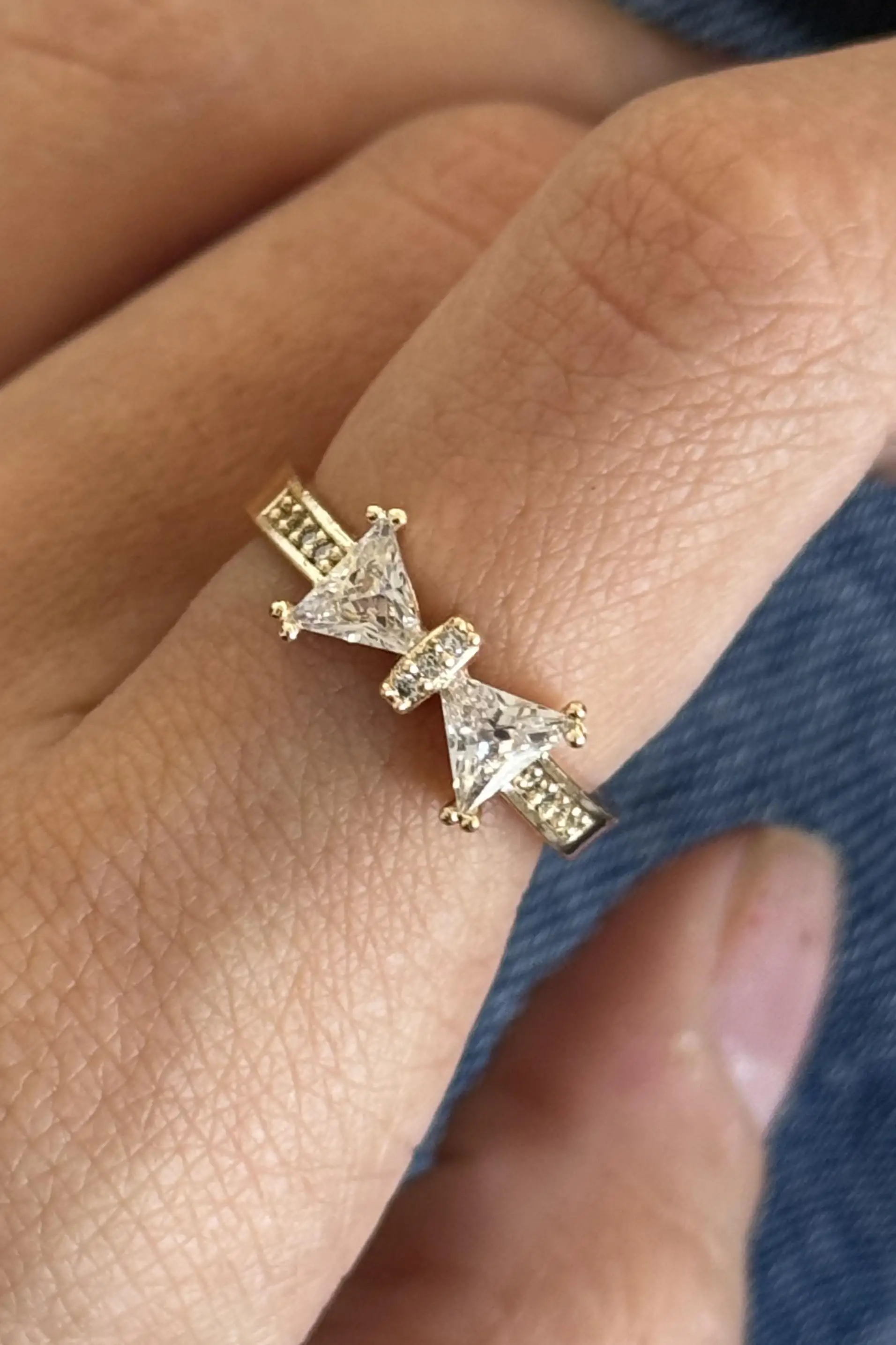 Altın Renk Kurdele Figürlü Taş Detaylı Ayarlanabilir Yüzük