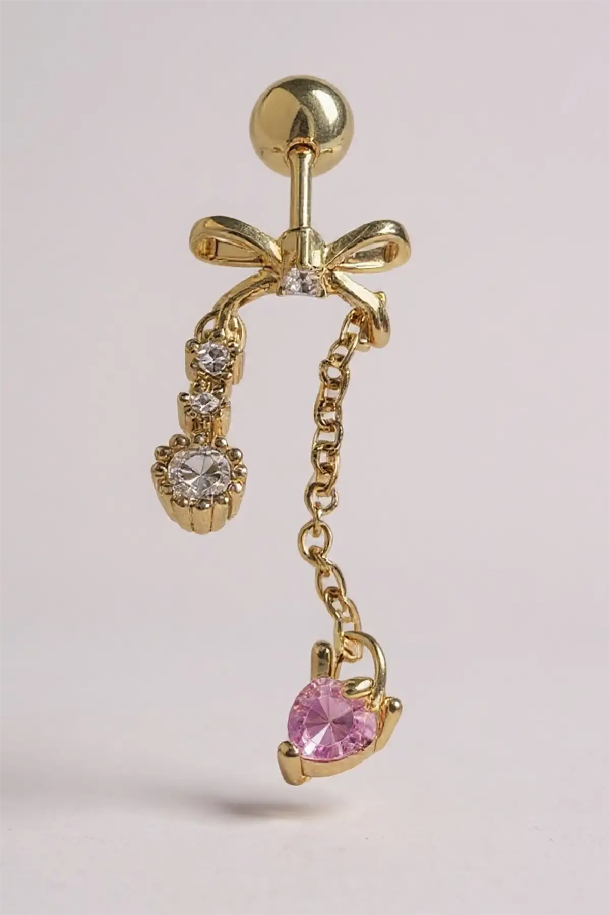 Altın Renk Kurdele Figürlü Taş Detaylı Cerrahi Çelik Tragus/Kıkırdak Küpe/Piercing (Tek)